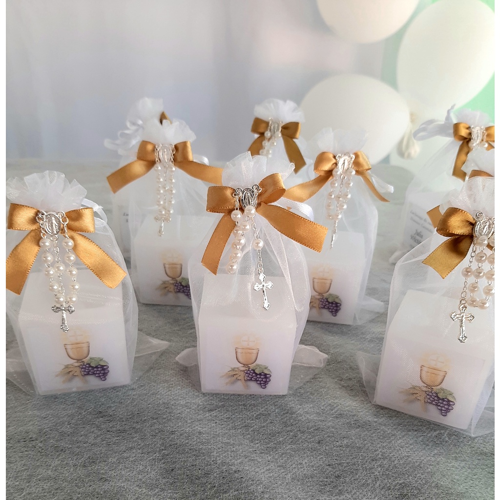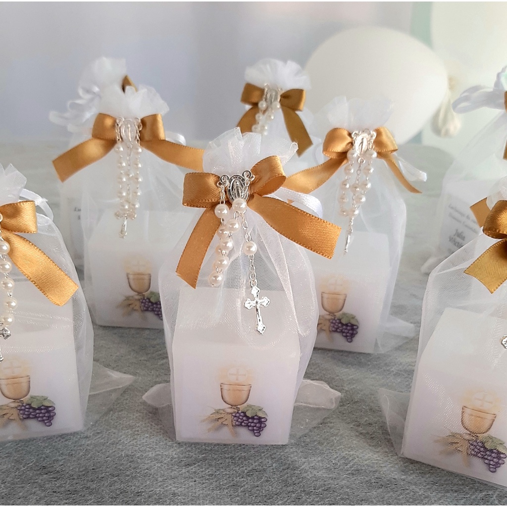 Vela lembrancinha Primeira comunhão Eucaristia com tercinho- KIT(ESCOLHA A QUANTIDADE)