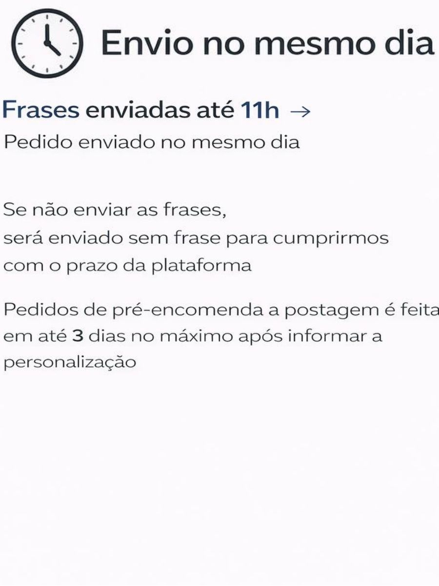 Sob encomenda: envio após 4 dias da compra