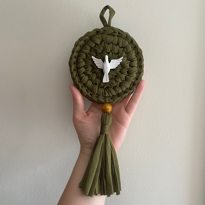 Mandala de Crochê Divino Espírito Santo Lembrança de Batizado / Enfeite de Porta / Adorno de Parede