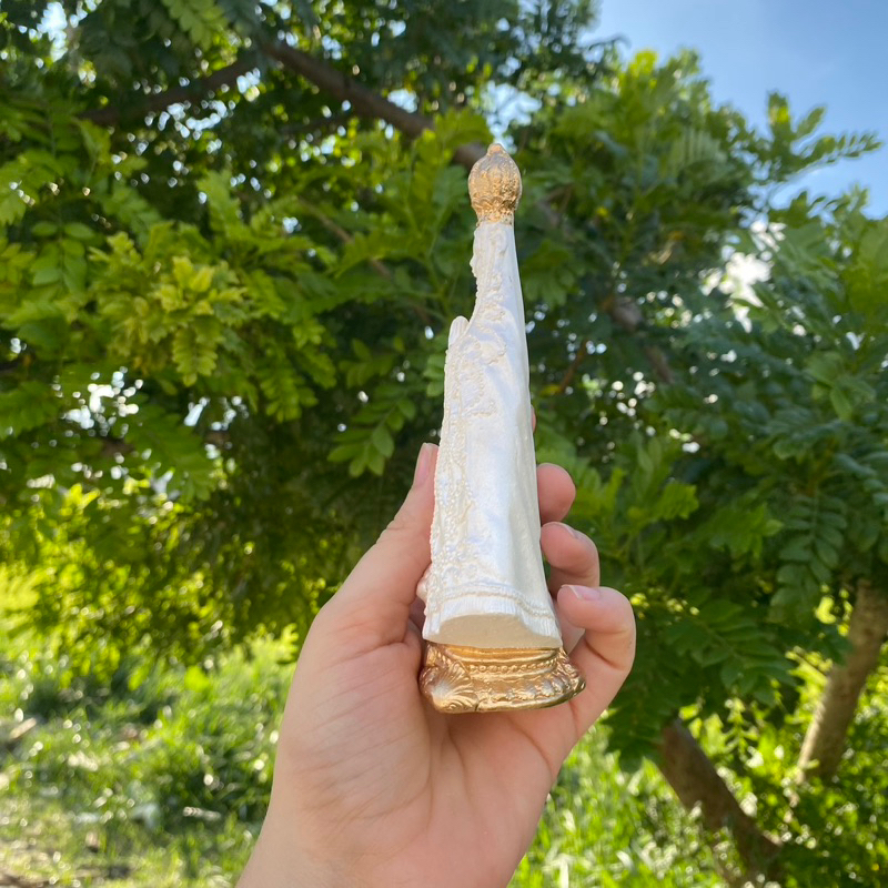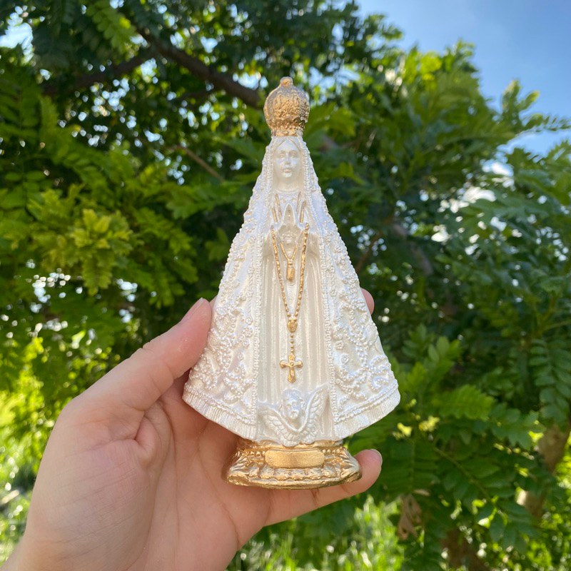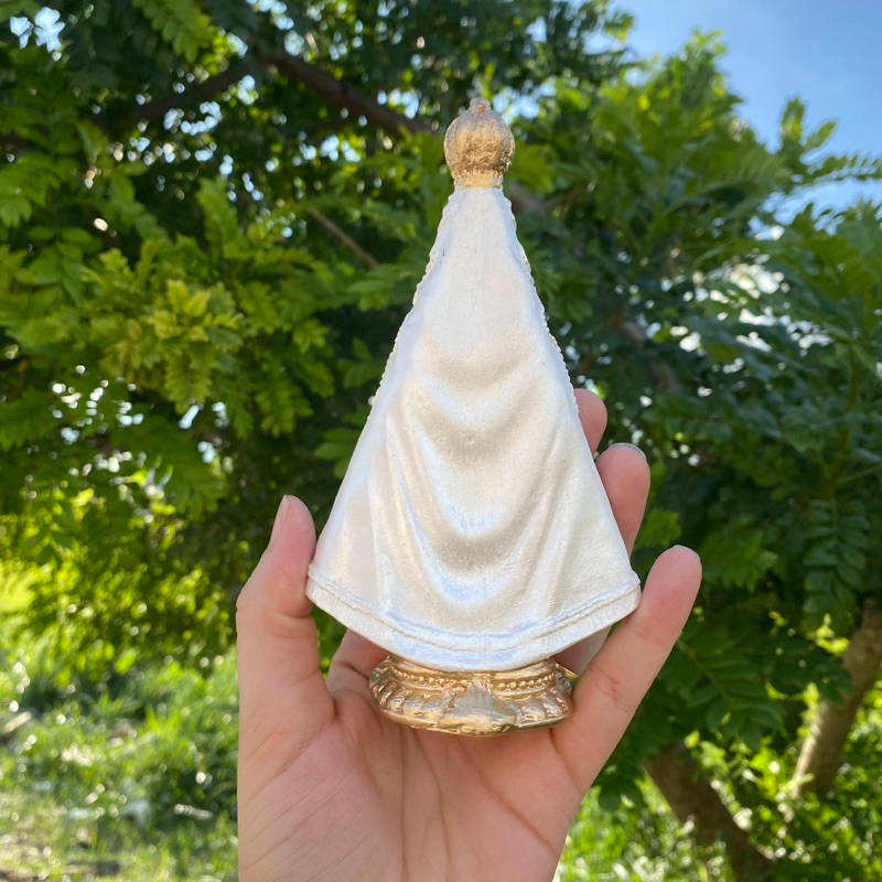 Kit 5 Nossa Senhora Aparecida 15cm Perolada com Detalhes Dourados