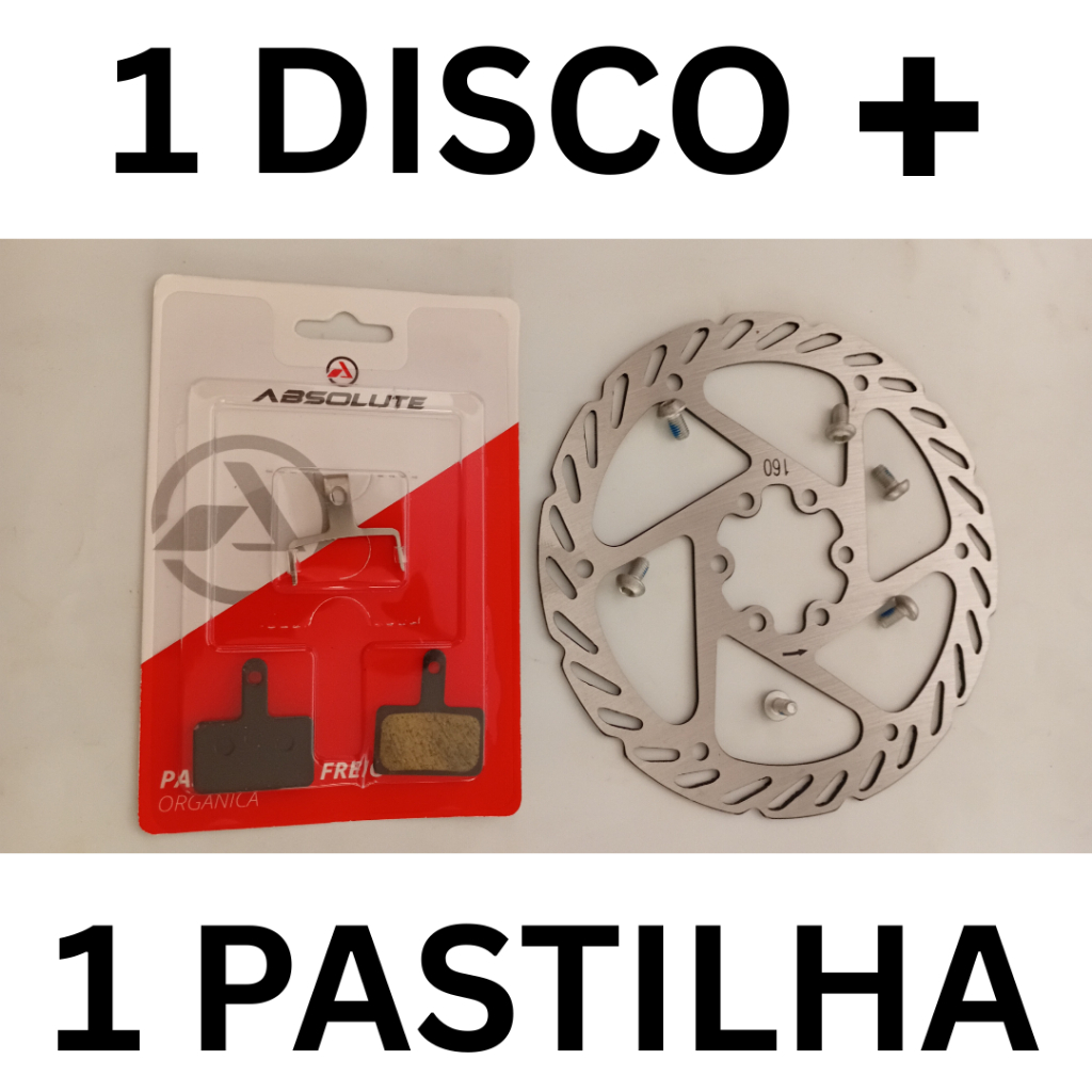 Disco Freio 160mm 6 Parafusos + Pastilha Absolute Para Shimano M315 até M575 1 Unidade De Cada