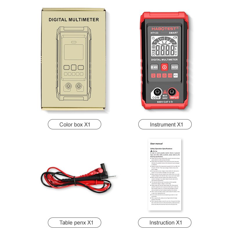Multímetro Digital Inteligente De 600V Com Ranhimento Automático AC/DC Voltímetro De Tensão Resistência Ao Amperímetro NCV Sem Contato