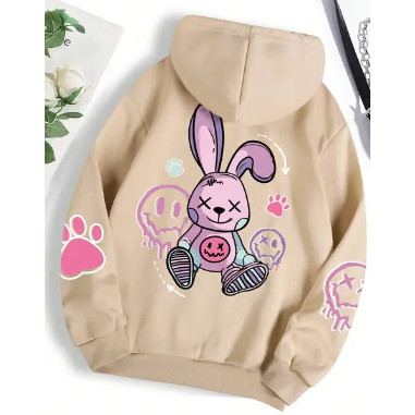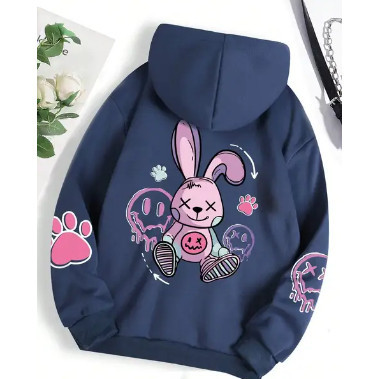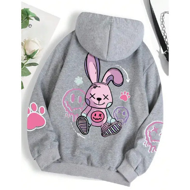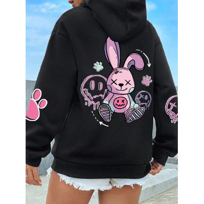 Moletom Canguru Estampado Coelho Cute Girls Streetwear Inverno Flanelado