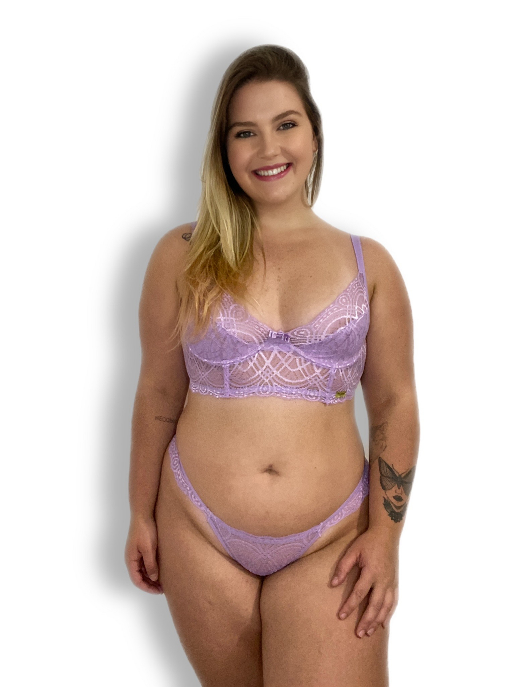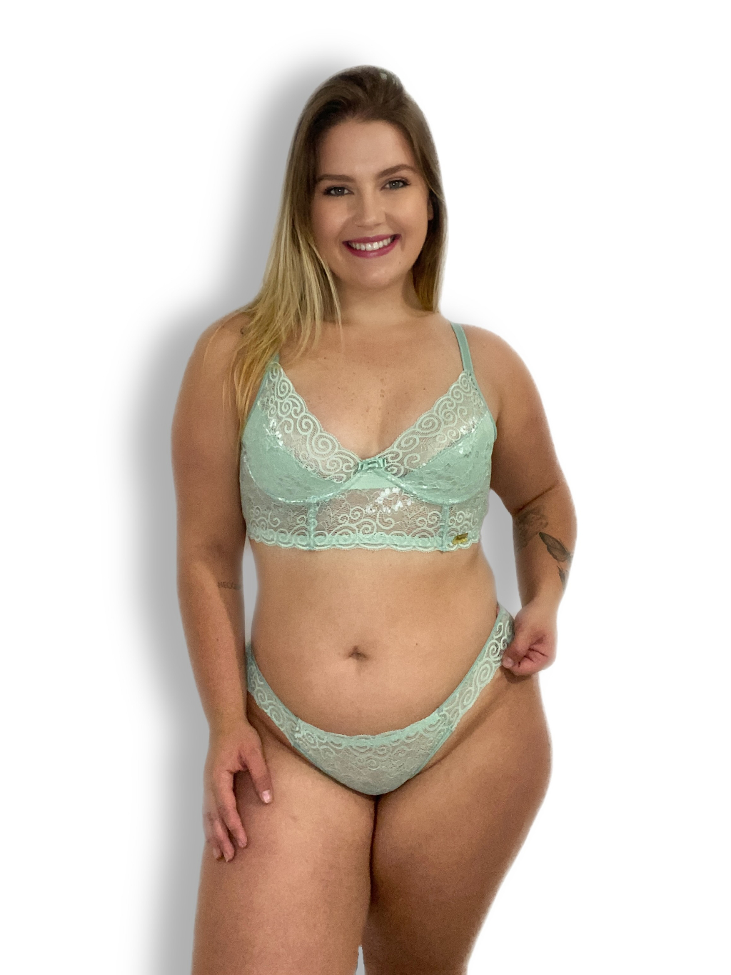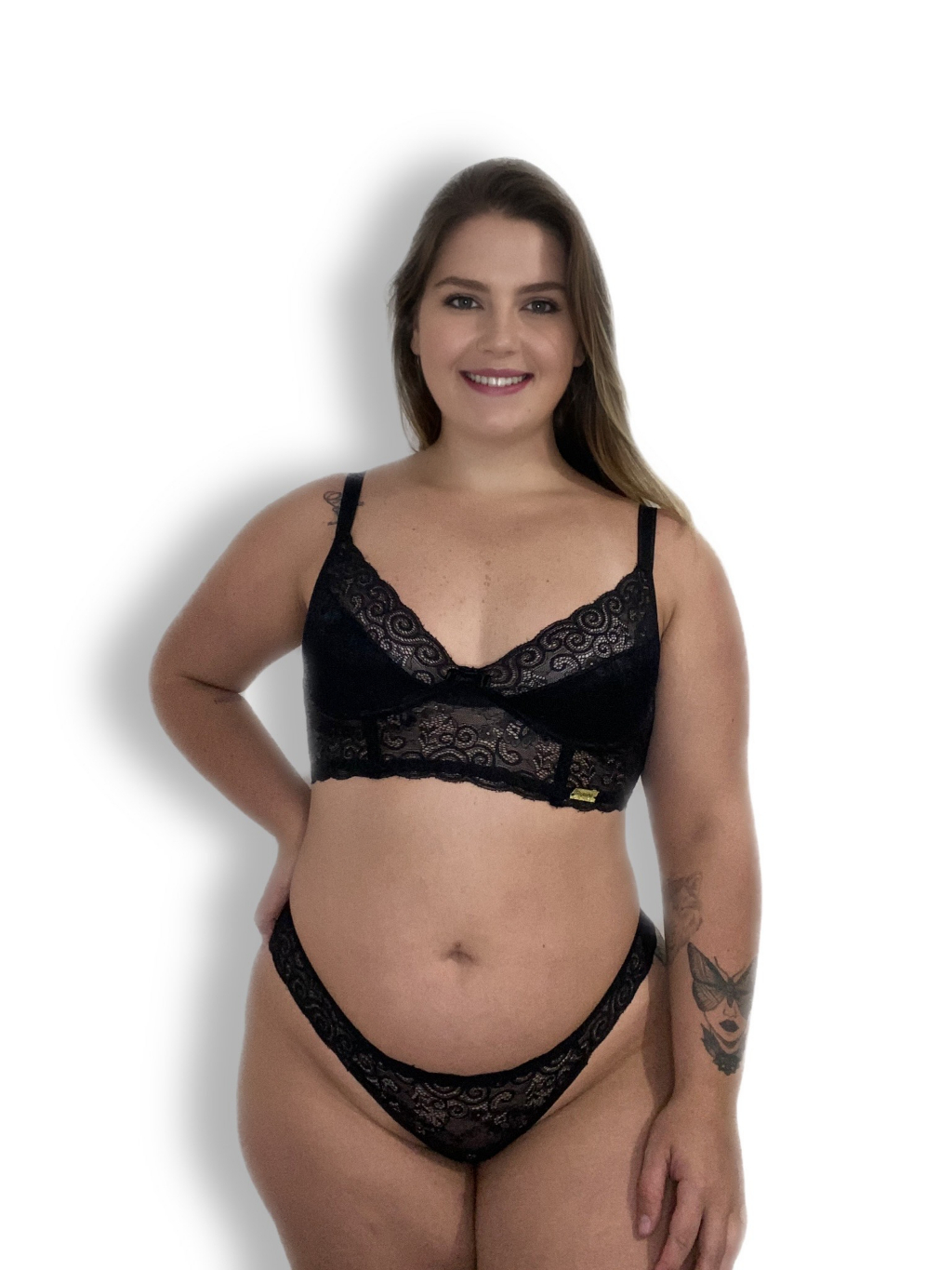 Conjunto Lingerie Plus Size Sexy Sem Bojo Com Aro Cropped Rendado Adulto