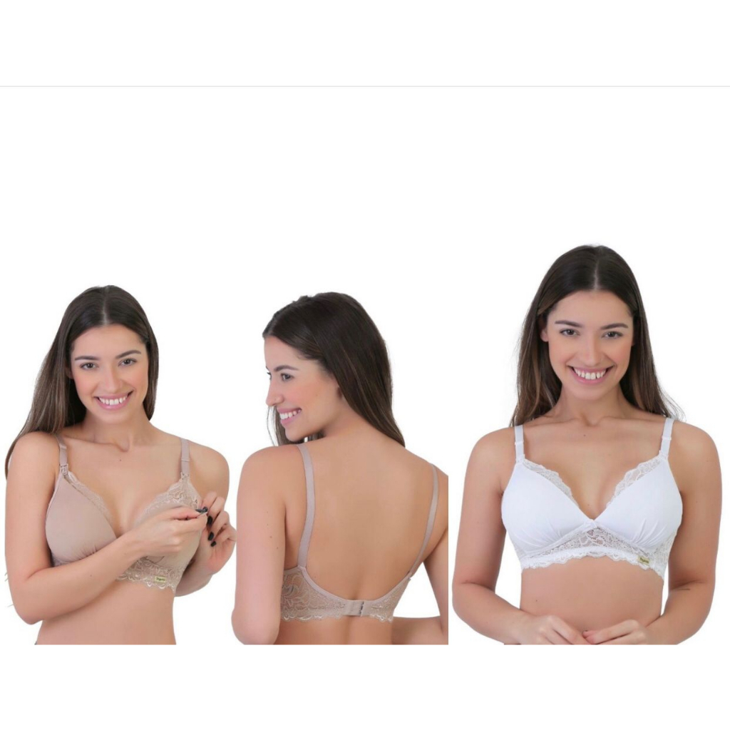 kit 2 Sutiã de Amamentação Com Alça Abre Fácil Sutia Gestante Reforçado Rendado