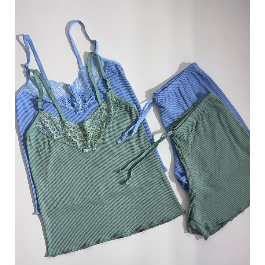 Baby Doll Canelado com Renda Conforto Estilo Noites Suaves Pijama