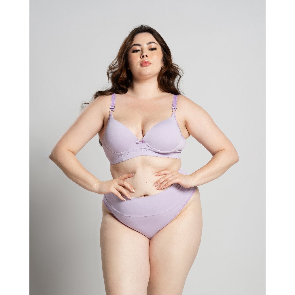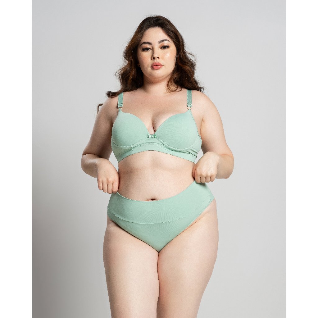 Conjunto Plus Size Lingerie Liso Confortável Calsinha Fio Duplo Sutiã Reforçado Dia a Dia