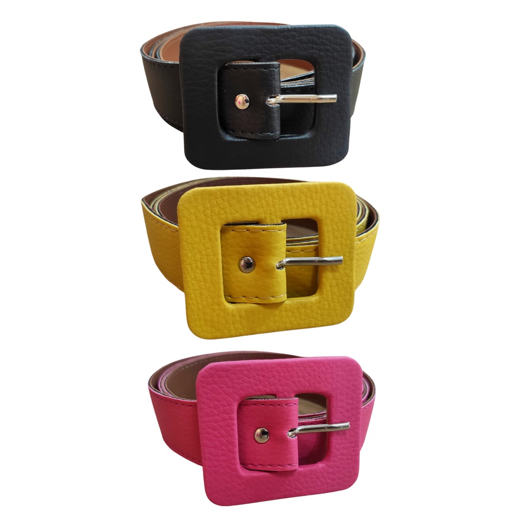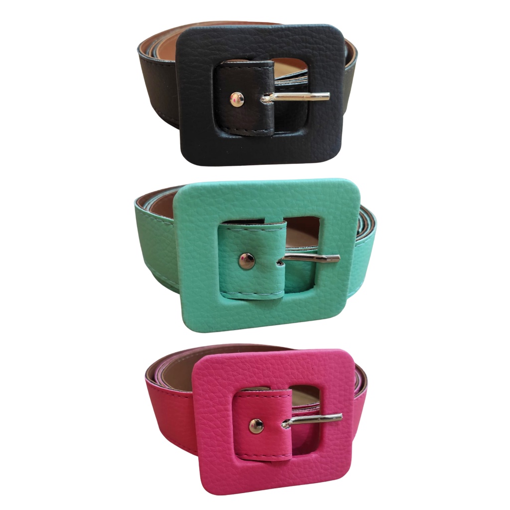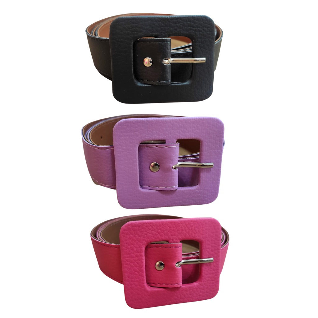 Kit 3 Cintos Feminino Plus Size Couro Sintetico Colorido Fivela Quadrada 3cm Largura Moda Tendência