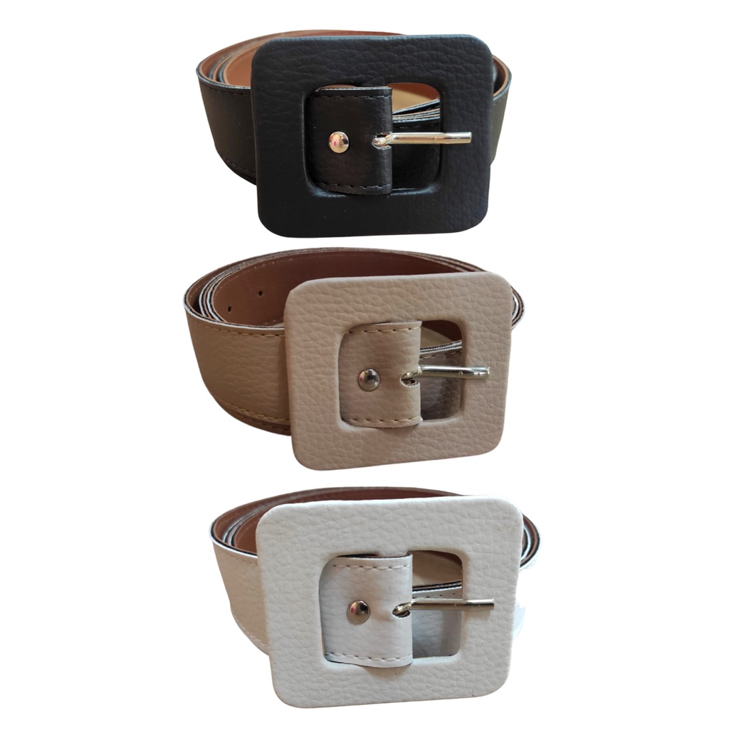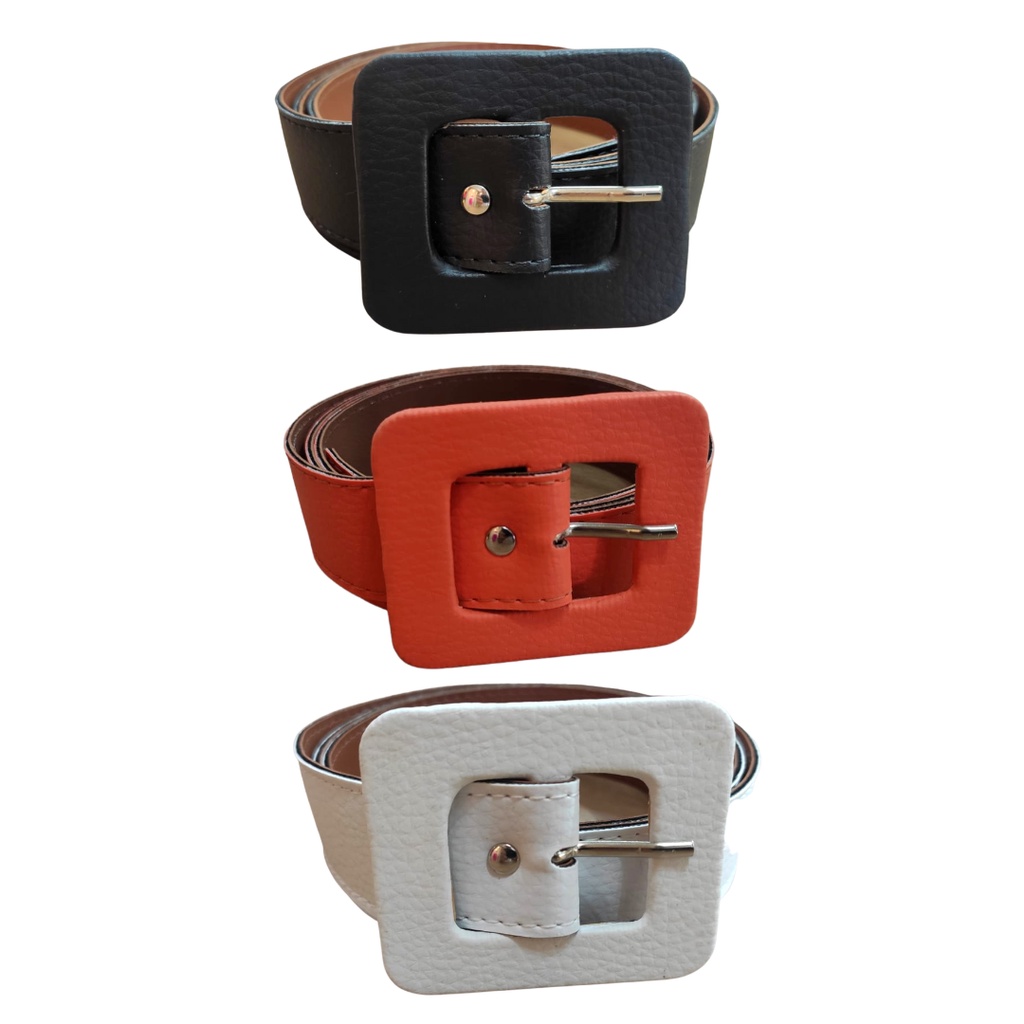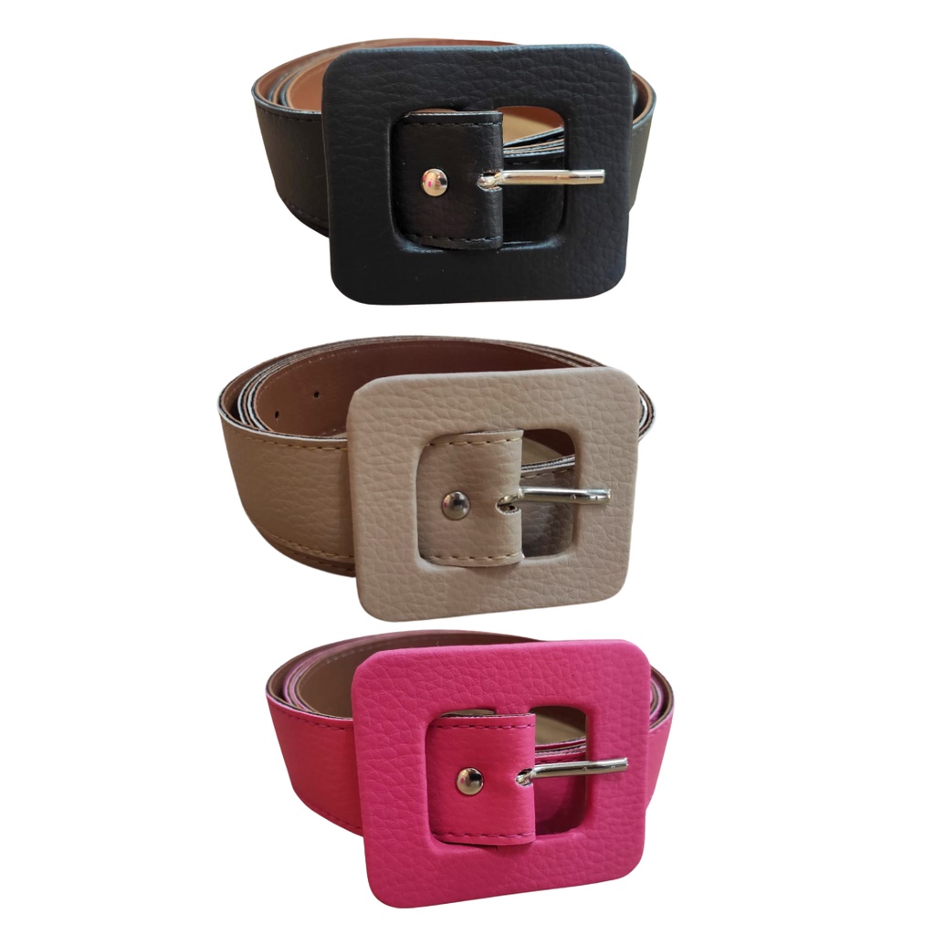Kit 3 Cintos Feminino Plus Size Couro Sintetico Colorido Fivela Quadrada 3cm Largura Moda Tendência