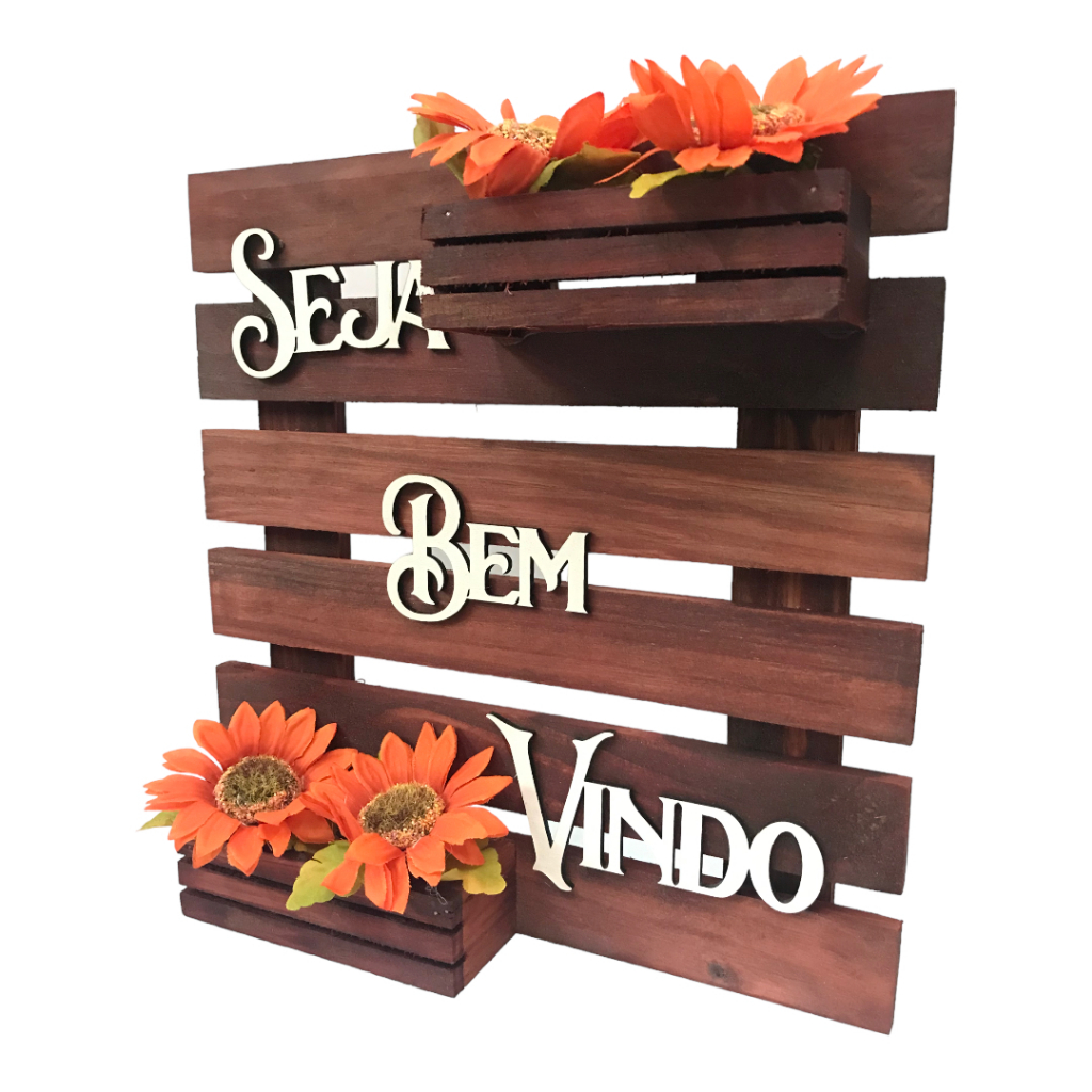 Placa Seja Bem Vindo Decoração Casa Madeira Decoração Parede (flor Variada)