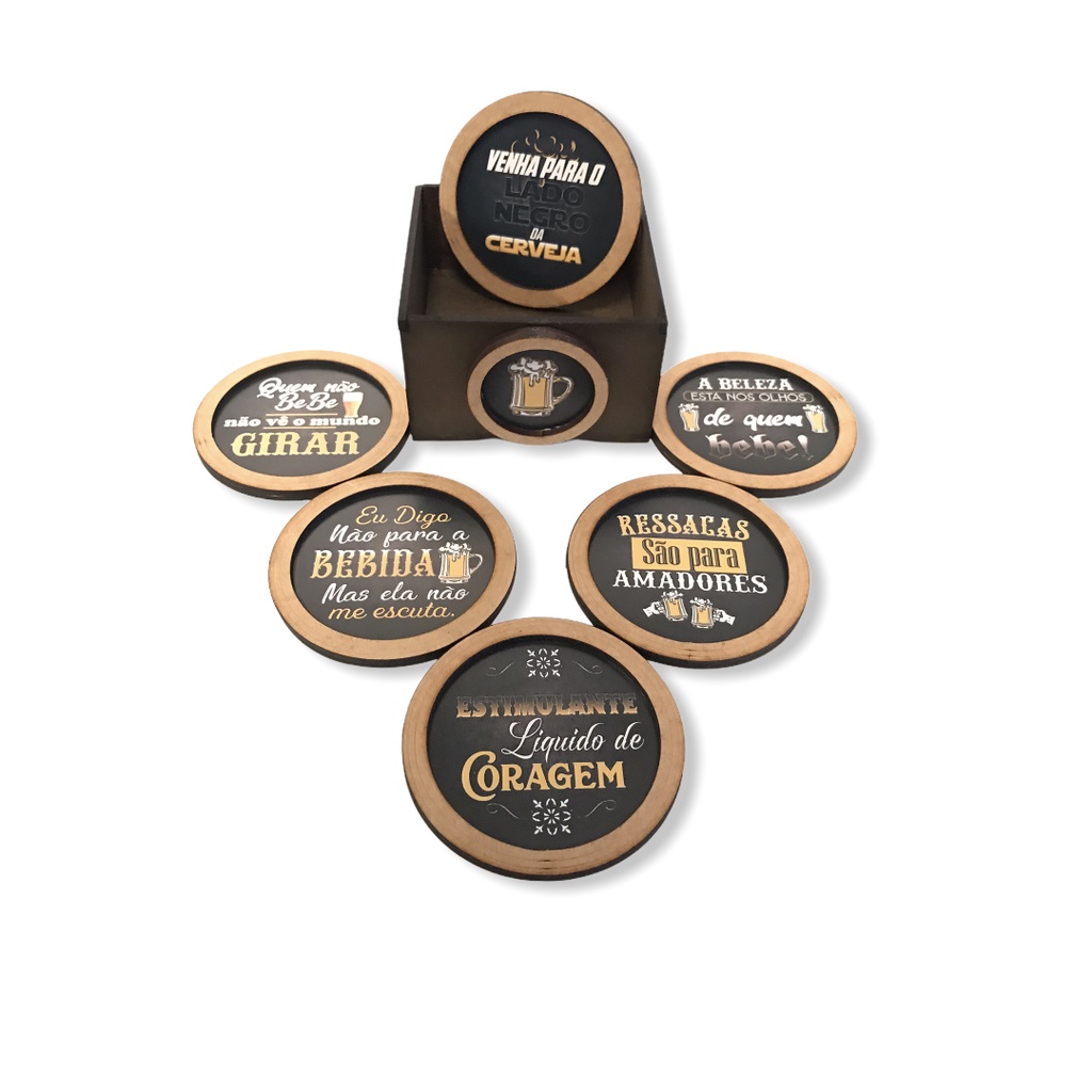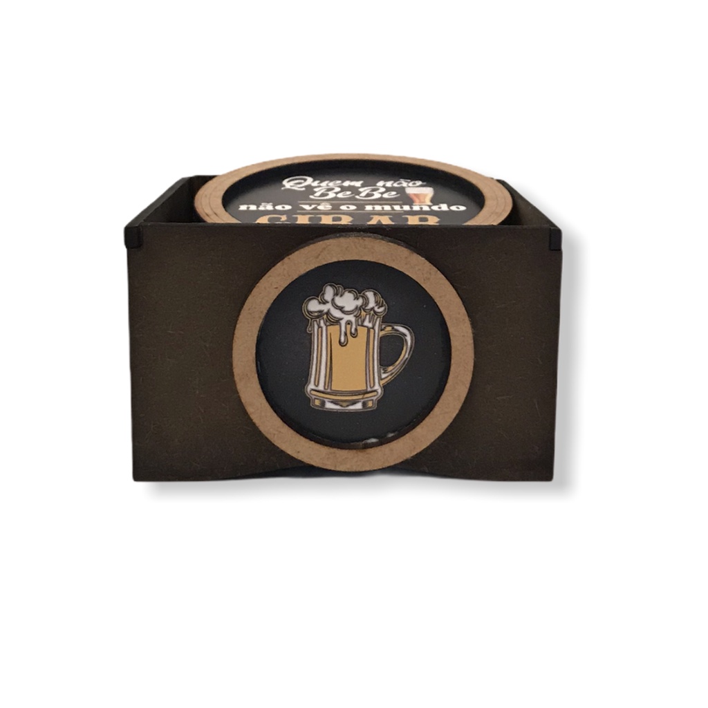 Porta Copo Madeira Estojo Bolacha Cerveja Bar Boteco Heinek. MDF