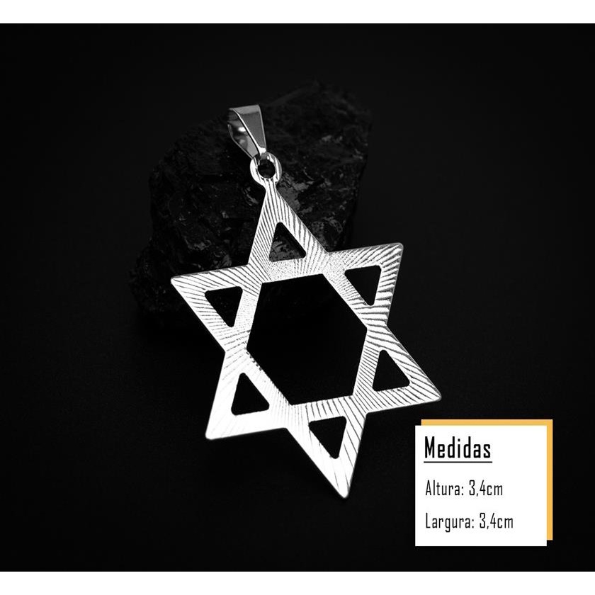Pingente Estrela Davi P/ Corrente Aco Inox J-330 Prata + Caixa OGrife
