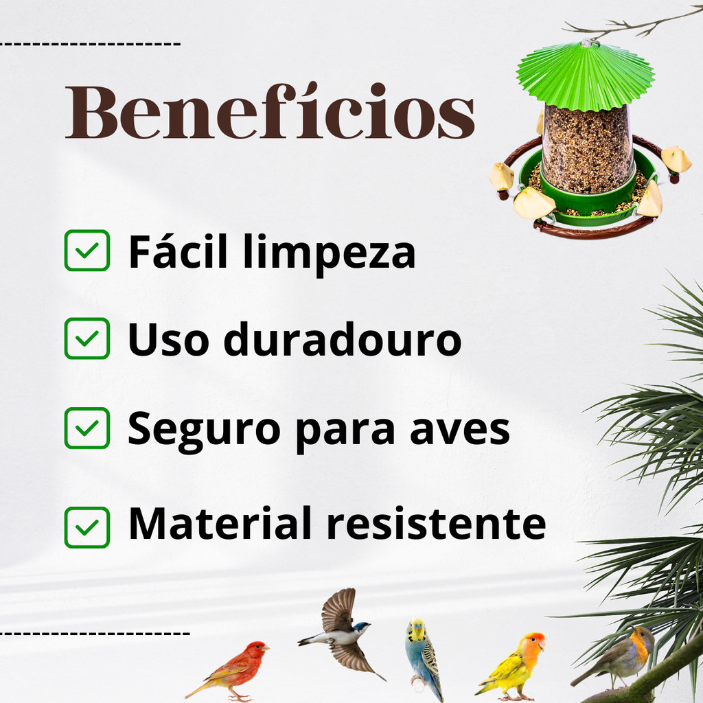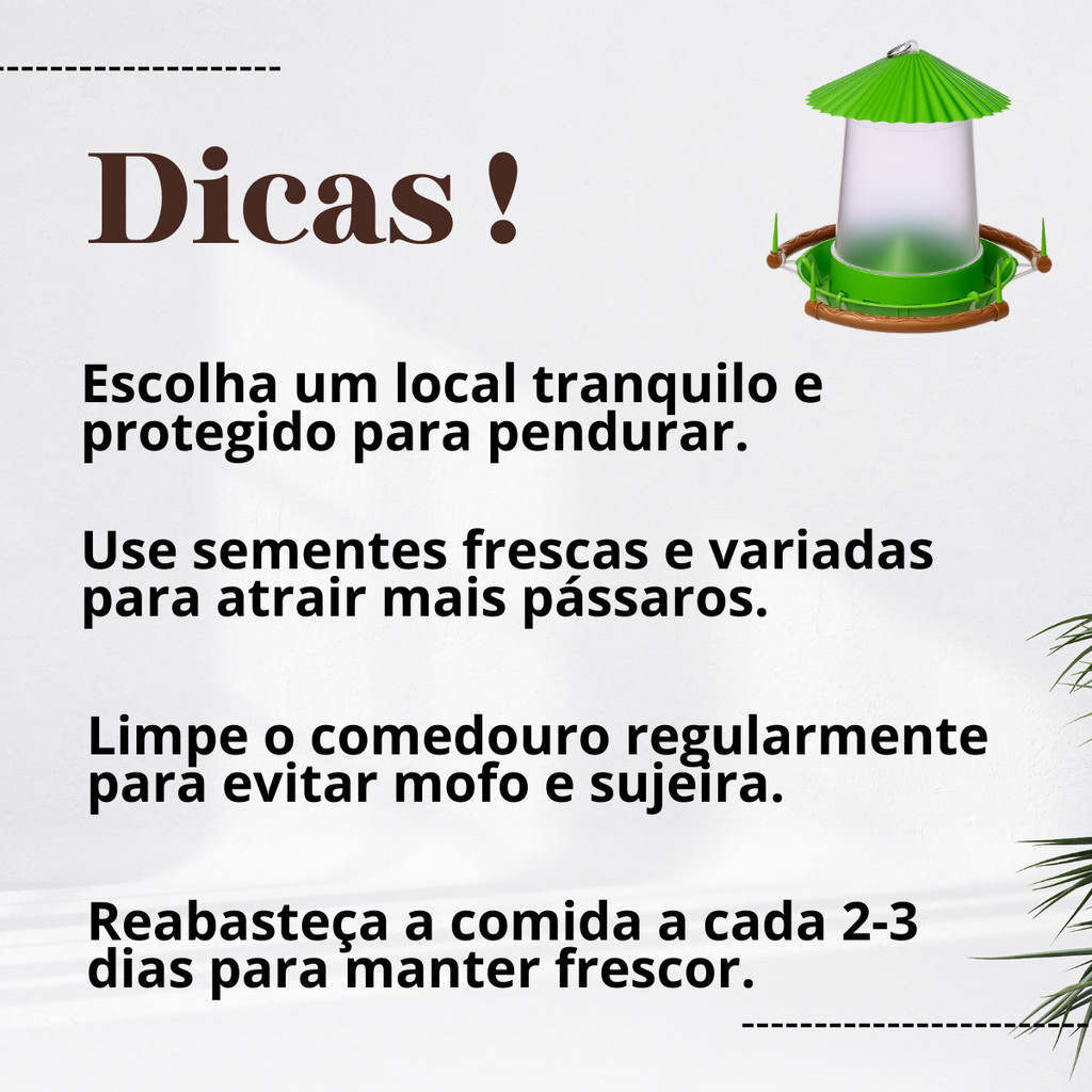 Comedouro Tratador Alimentador Passaros Silvstres Jardim Alpiste Livre Porta Fruta Pendurar Quintal