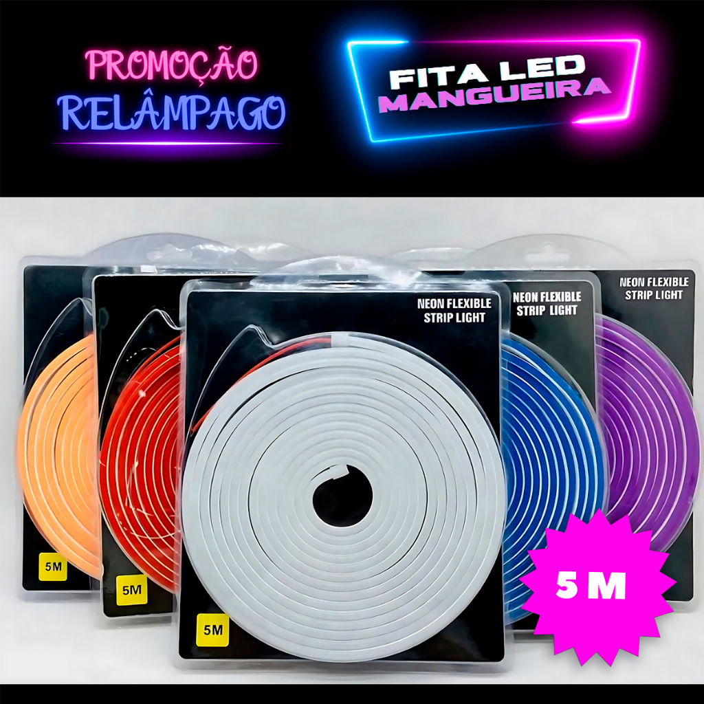 Fita Led Flexivel Mangueira Led Neon 5 Metros Brilho 12v Alto Brilho Resistente a Agua
