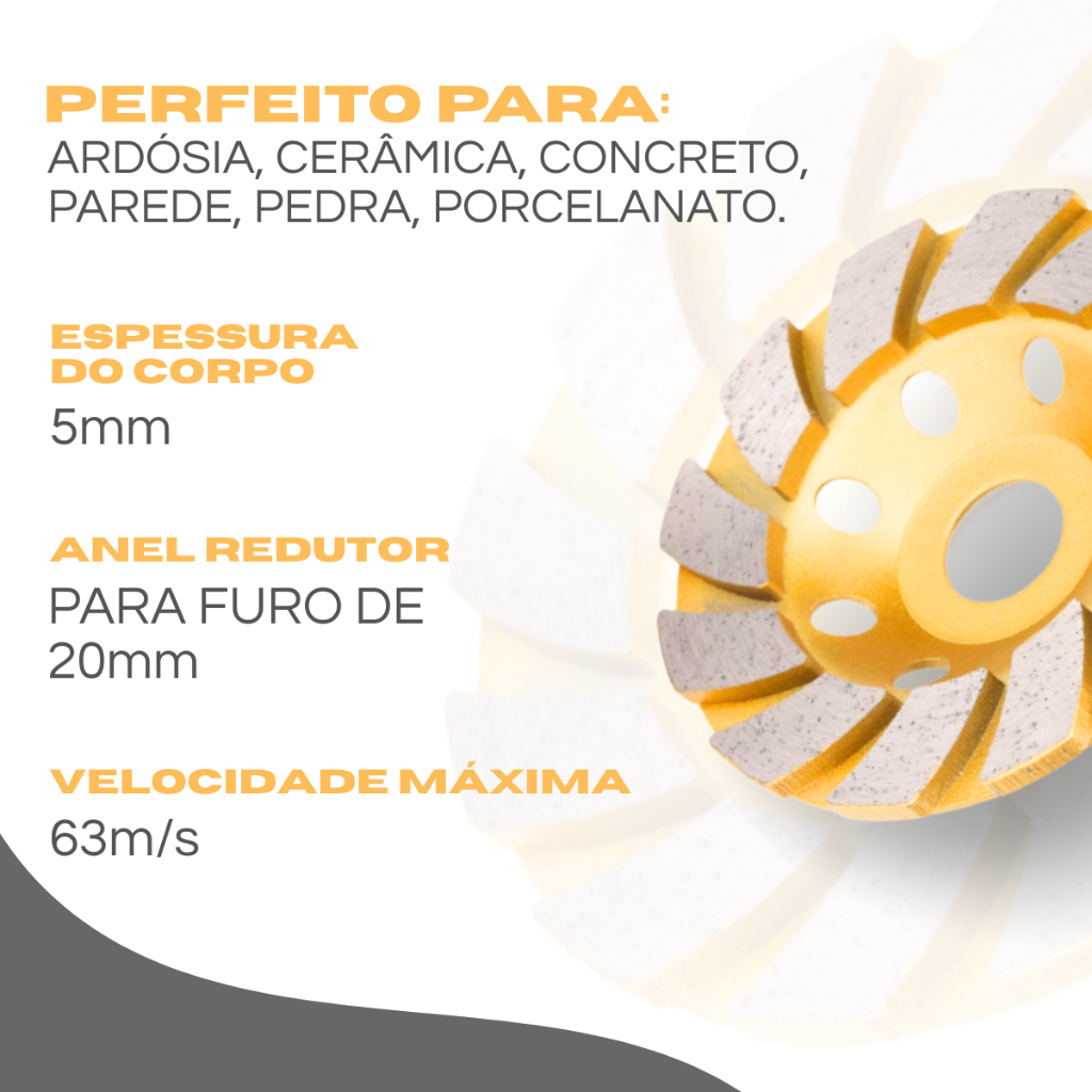 Disco Desbaste Rebolo Diamantado Turbo Alta Durabilidade Uso Seco Wet Profissional 100Mm