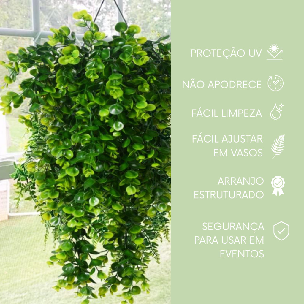 Planta Eucalipto Decoração Pendente Samambaia Artificial Realista