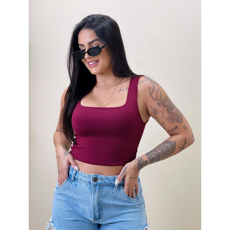 cropped feminino regata tendência com forro