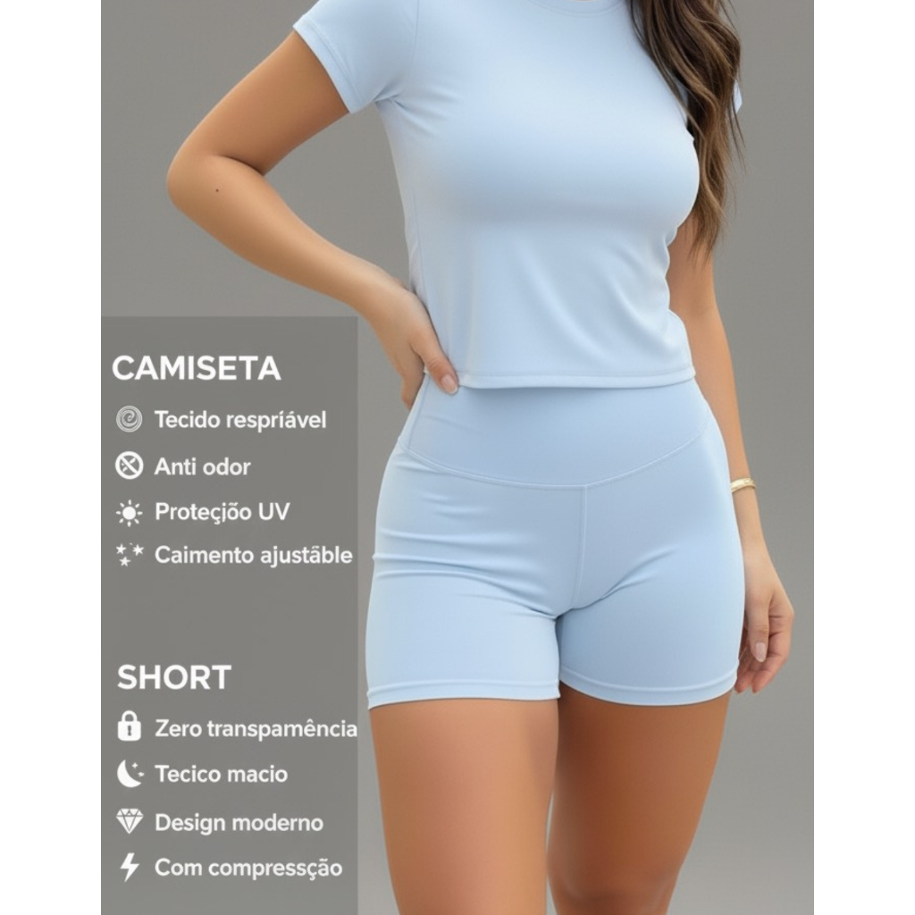 Conjunto Fitness Feminino Academia Treino Camiseta Slim Fit De Compreensão Short Zero Transparência
