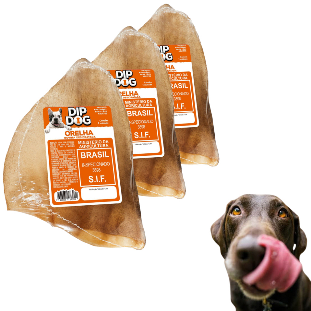 Petisco cachorro Orelha Bovina para Caes mordedor natural desidratado adestrador pet diversos kits