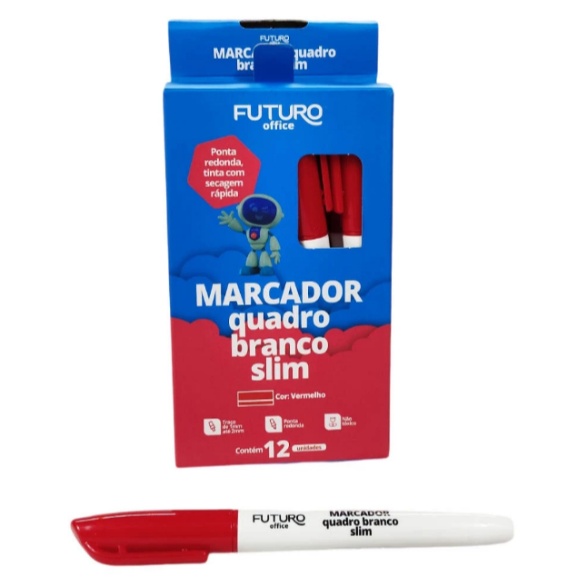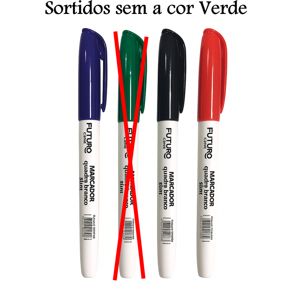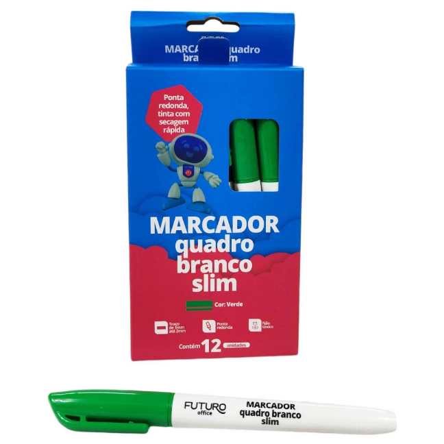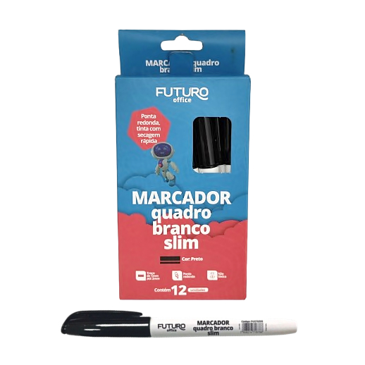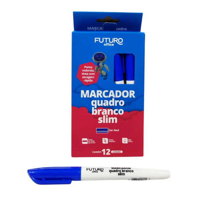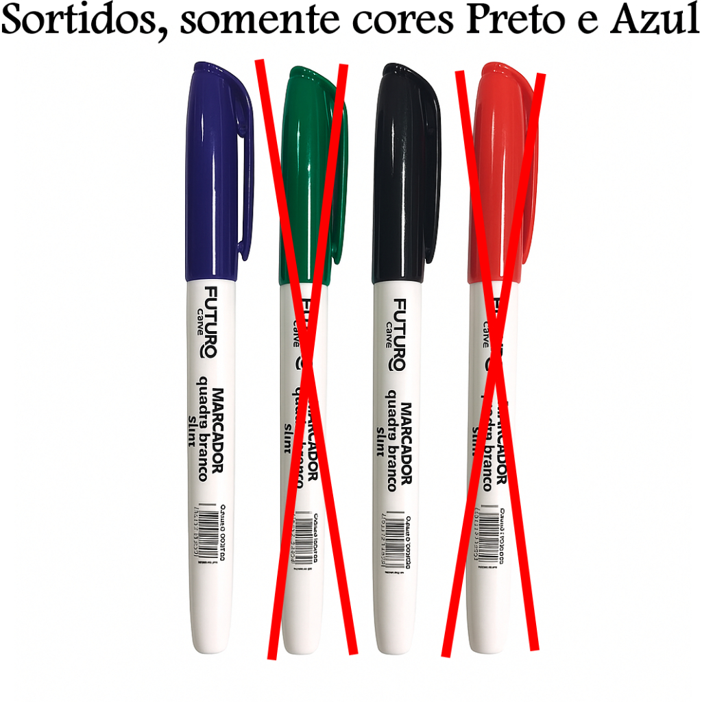 Caixa com 12 Caneta Marcador Quadro Branco Slim Pincel MQB Azul Verde Preto Vermelho Futuro Office