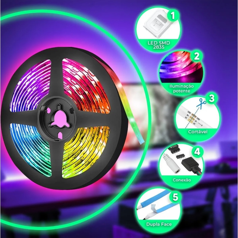 Fitas LED 3528 Rolo 5m 300 Leds Com Silicone Ip65 Prova Dágua Bivolt Rgb Branco Frio/branco quente Dupla Face