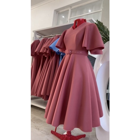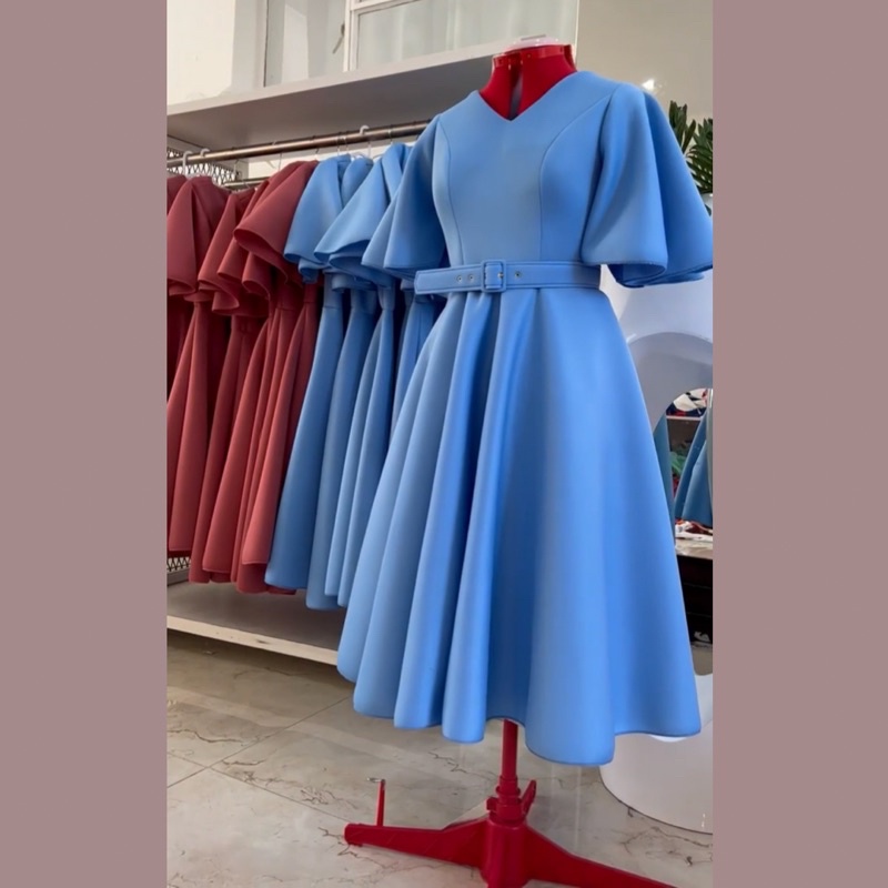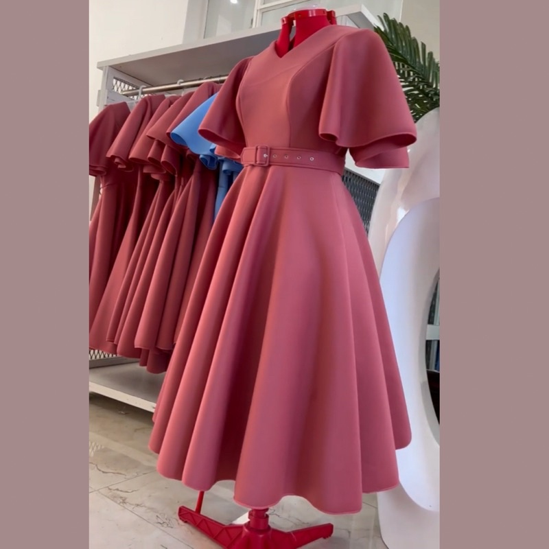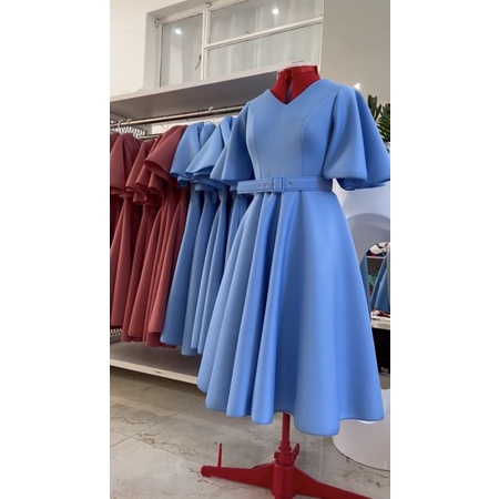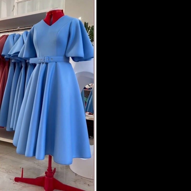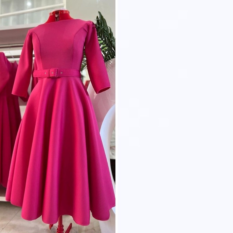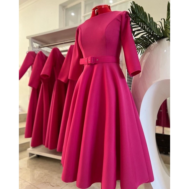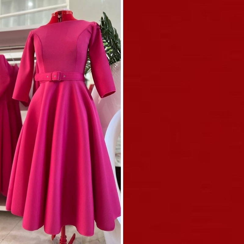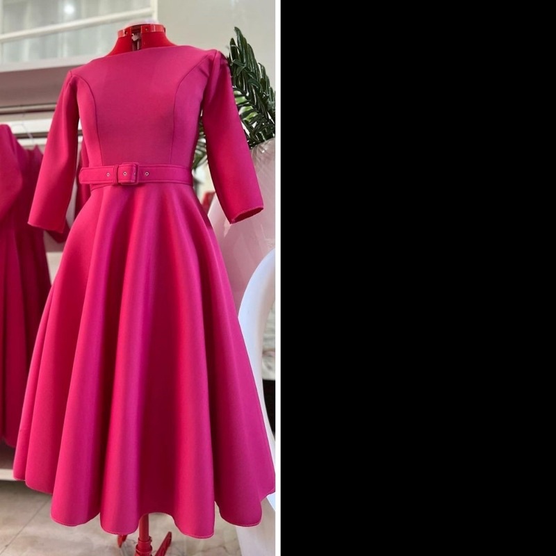 vestido mídi na malha montaria ou neoprene, como na foto, acompanha cinto.