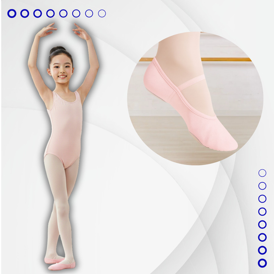 Sapatilha Ballet Lona Solado Dividido Meia Ponta Infantil - Cores Rosa Preto Branco Bege