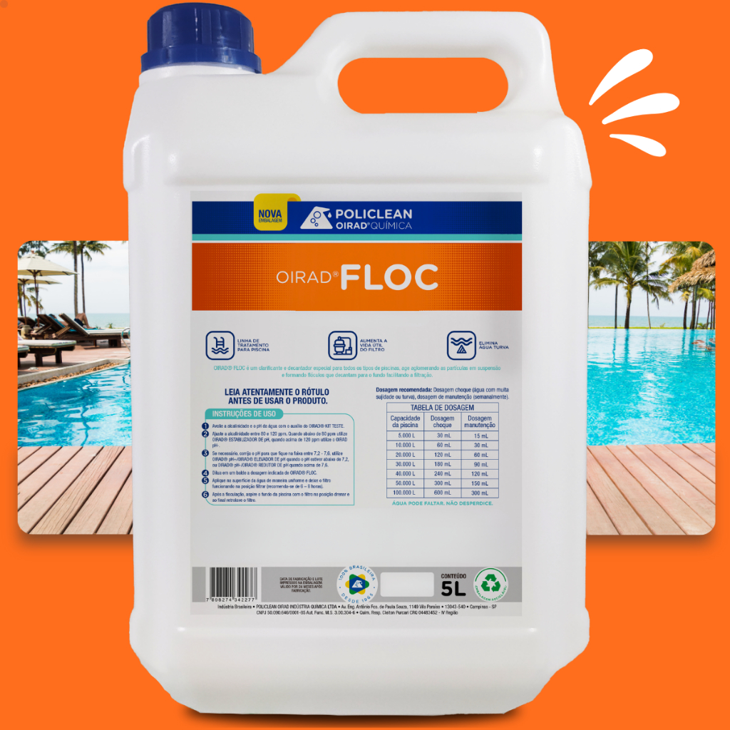 Floc Clarificante Decantador Floculante Piscina Água Brilhante Cristalina Saudável 1 litro 5 litros