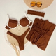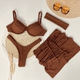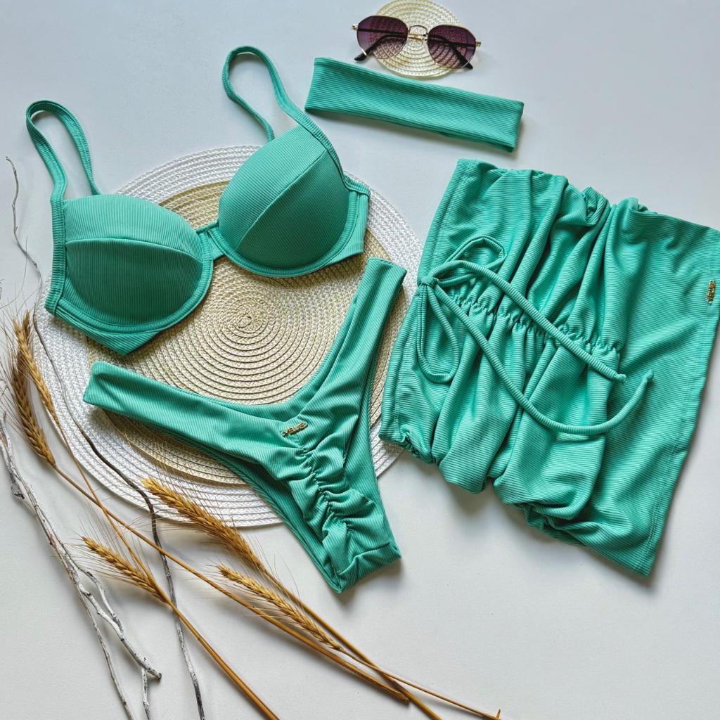 Kit Biquíni Top Meia Taça e Asa Delta Fio Dental + Saida de praia e Faixa 4 peças Empina Bumbum e Bojo Removivel