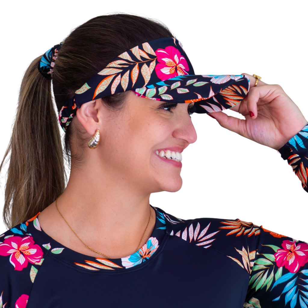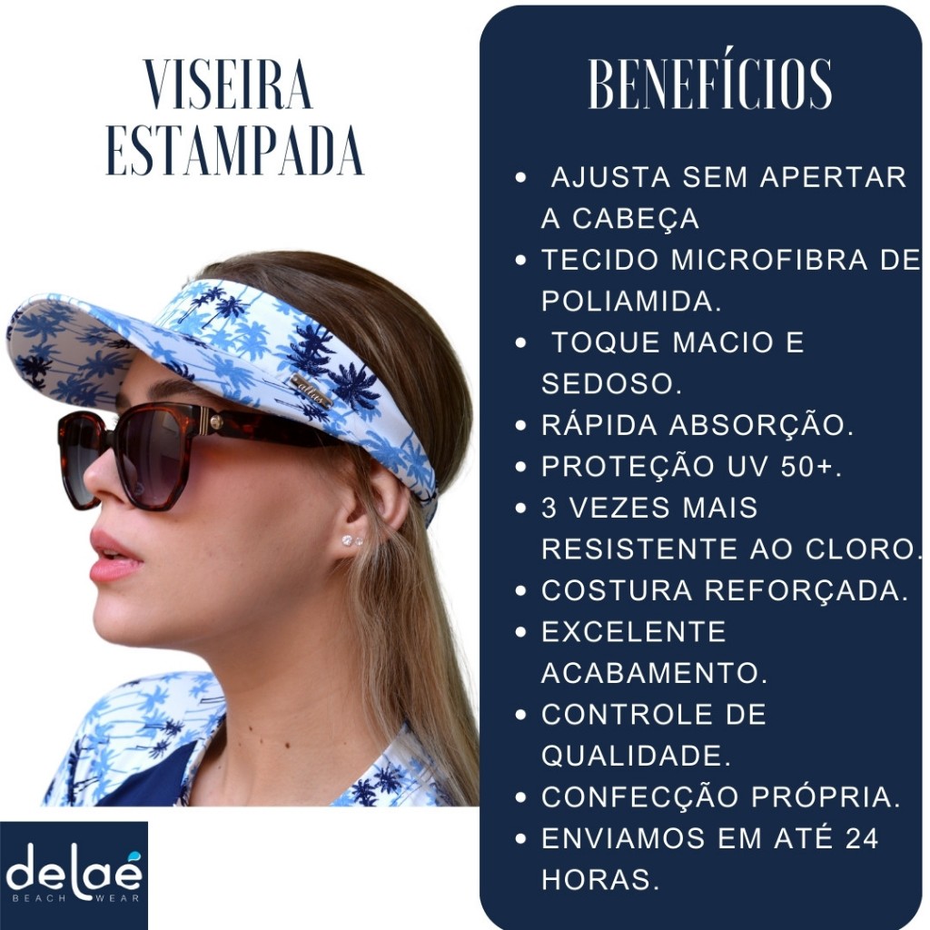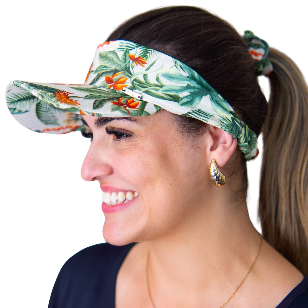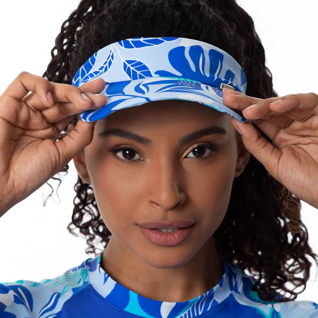 Kit Viseira De Praia + Scrunchie Estampado Caminhada Corrida Vôlei Beach Tênis Uv50+ Delaé Beachwear