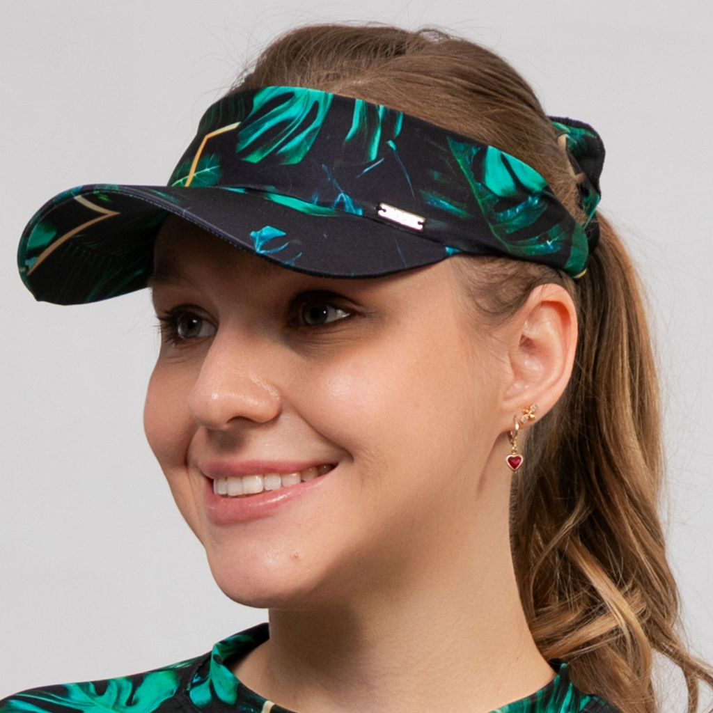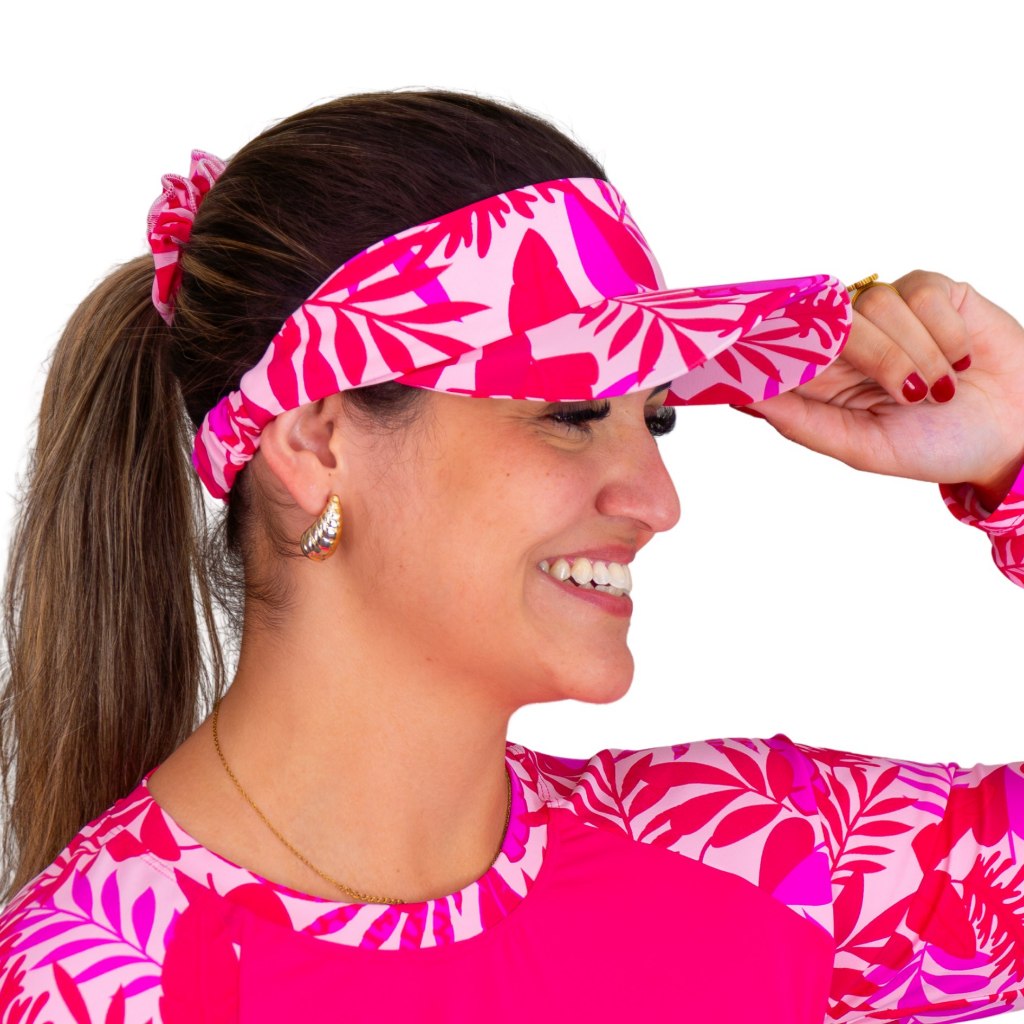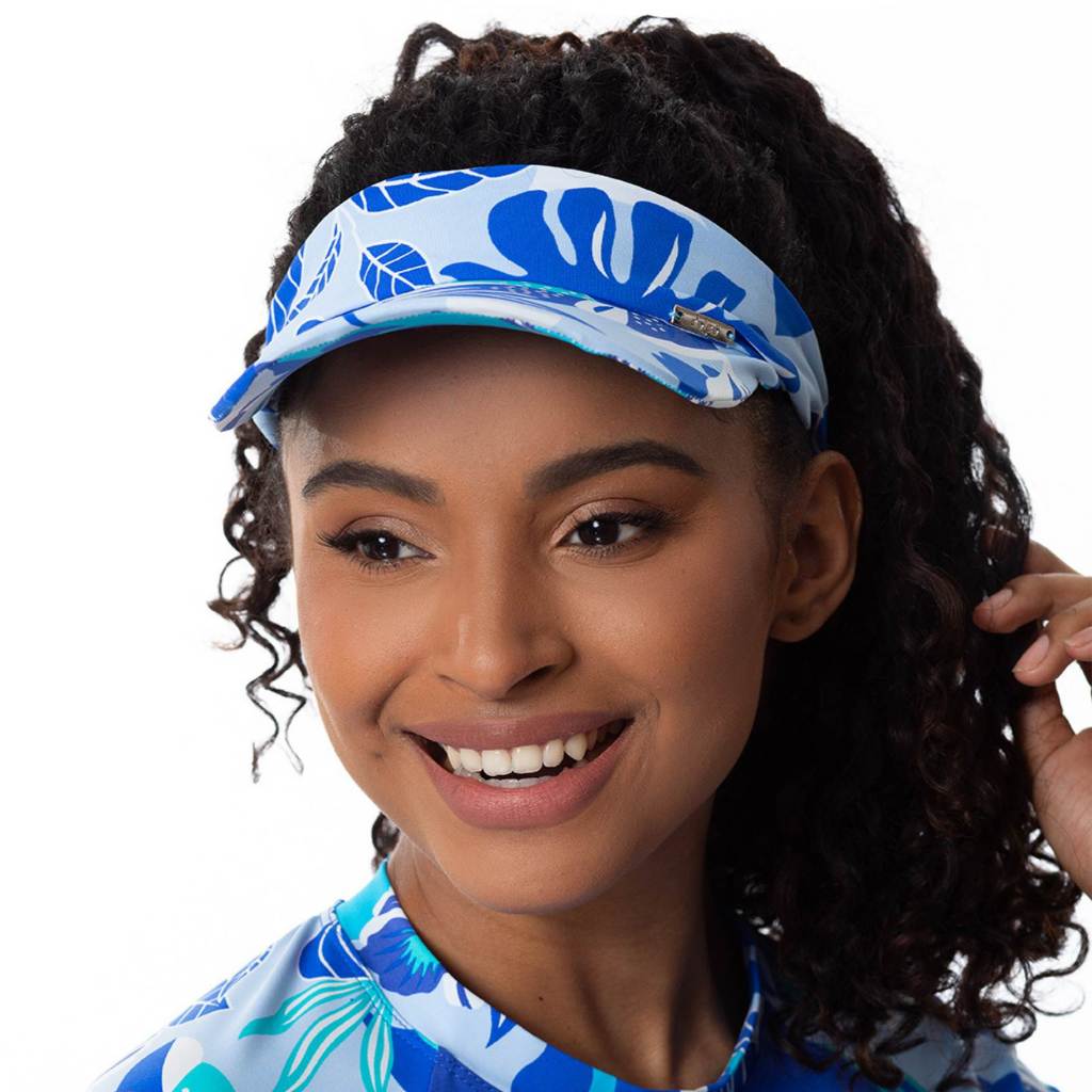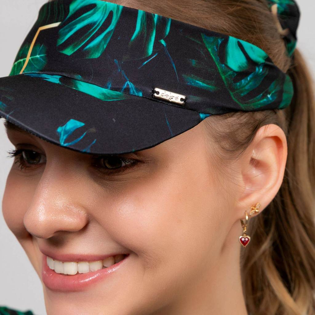 Kit Viseira De Praia + Scrunchie Estampado Caminhada Corrida Vôlei Beach Tênis Uv50+ Delaé Beachwear