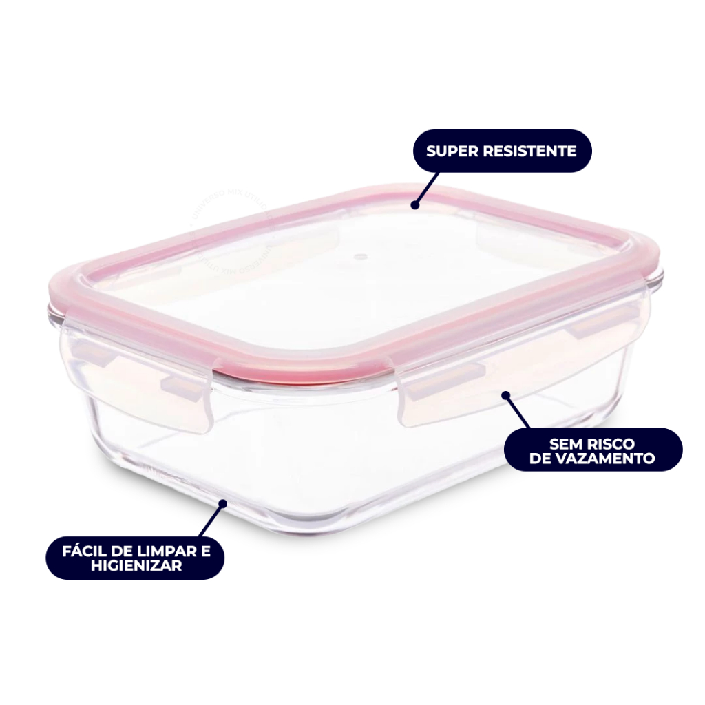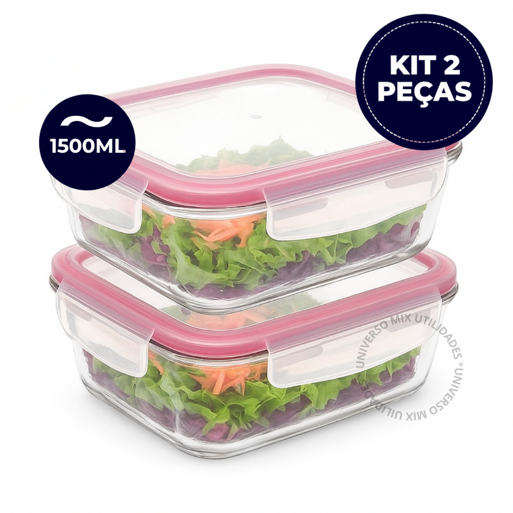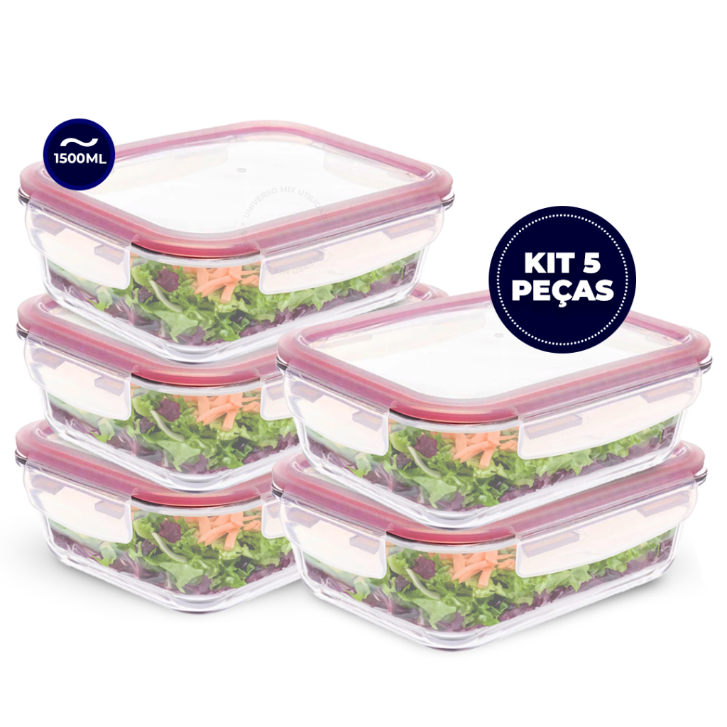 Kit 2 ou 5 Potes Hermético 4 Travas Retangular Vidro 1500ml Marmita Premium