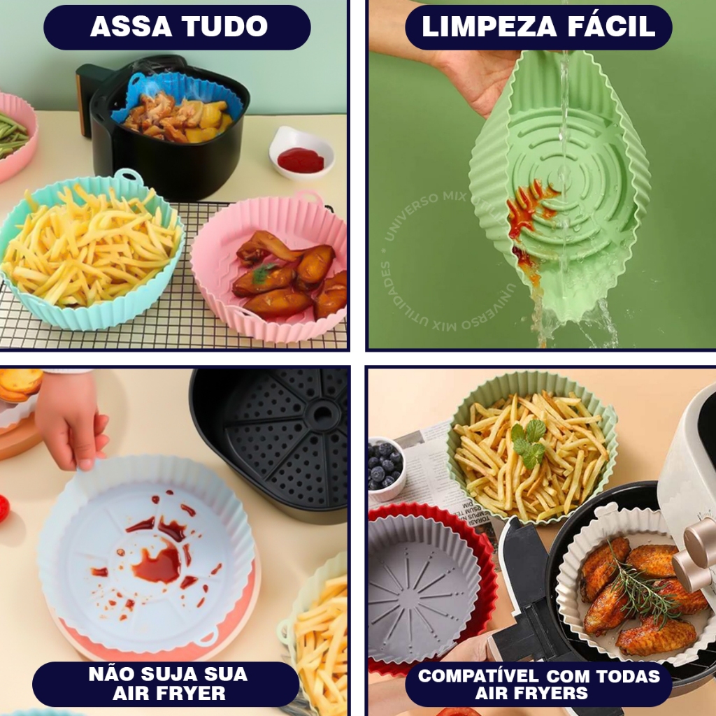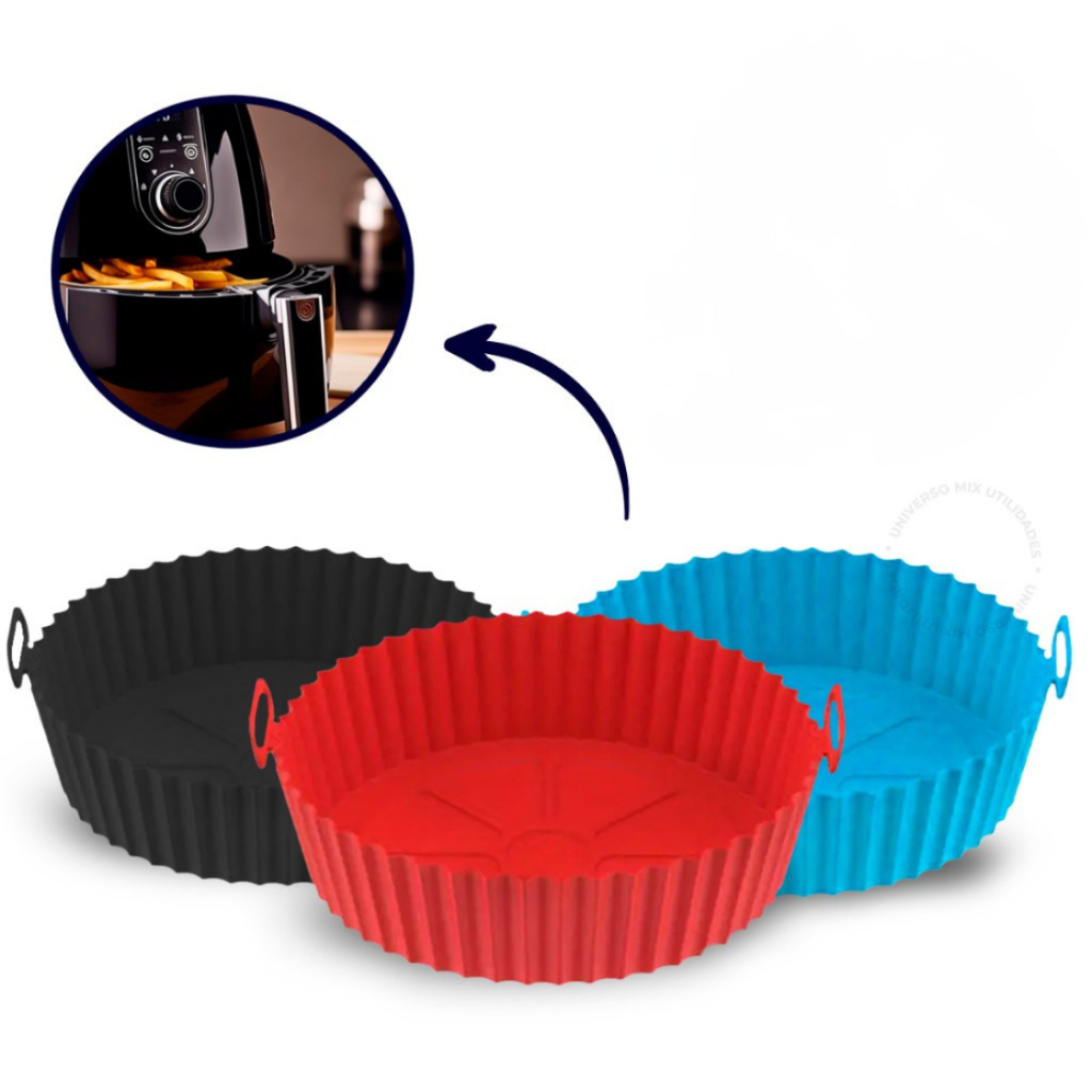 Kit 3 Formas Assadeira Para Fritadeira Air Fryer Em Silicone Flexível Lavável