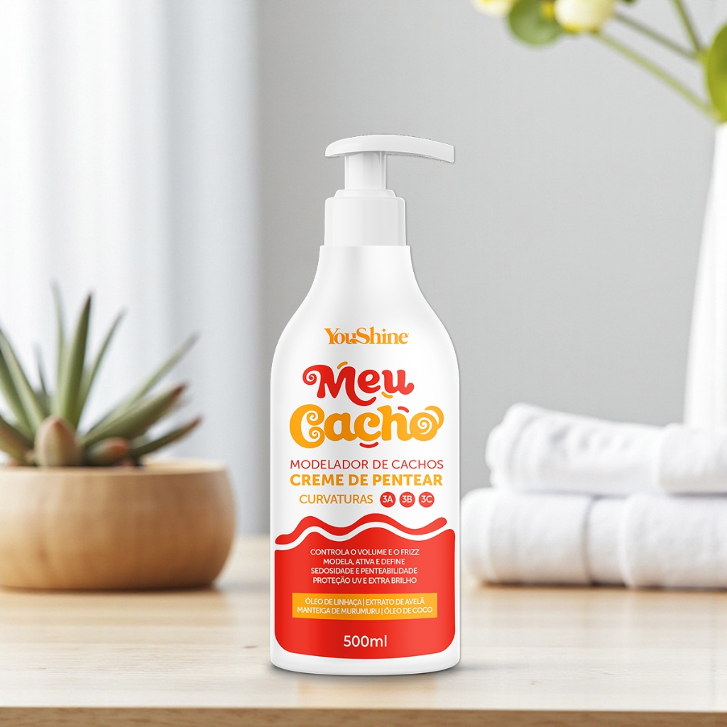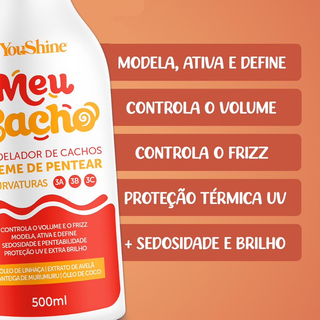 Creme De Pentear Meu Cacho Modelador de Cachos YouShine 500mL Definição Hidratação Encaracolando