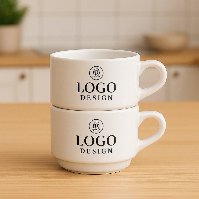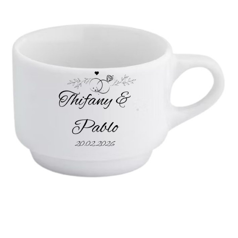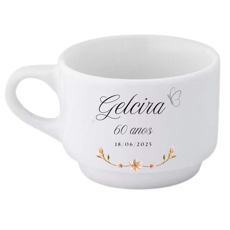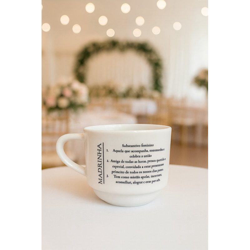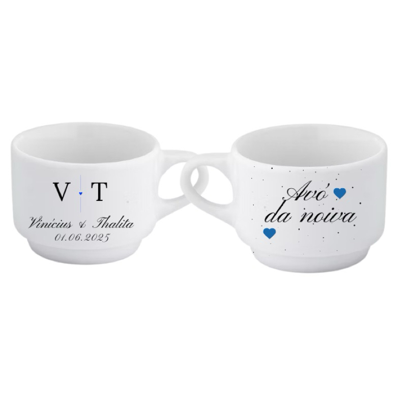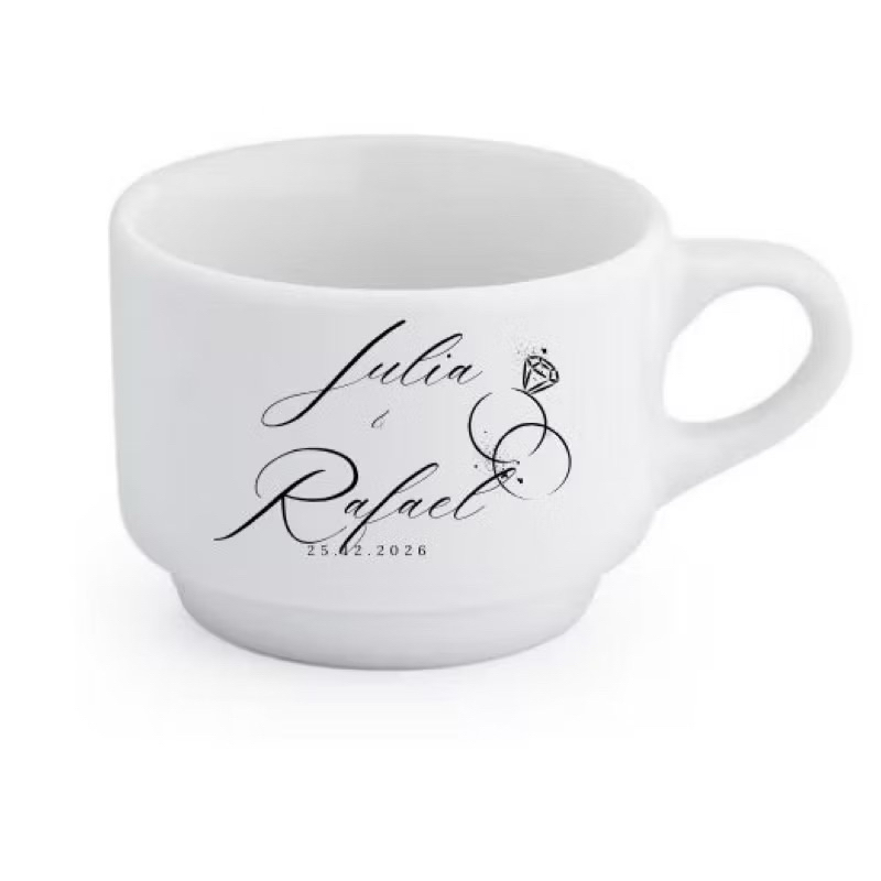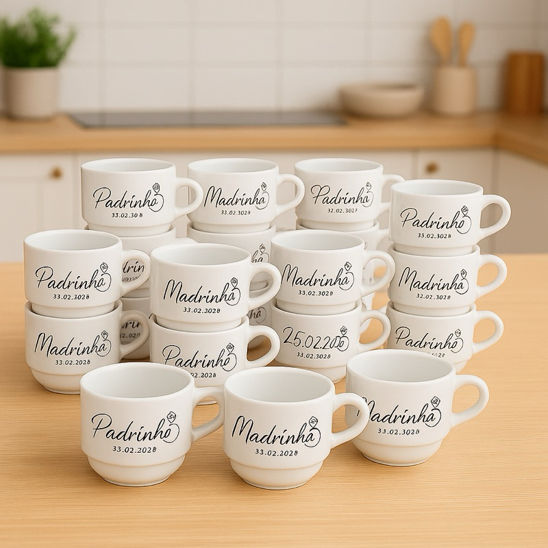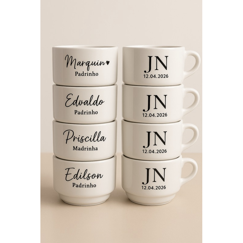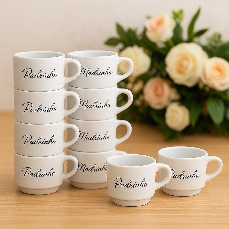 Xícaras empilháveis de porcelana 170ml personalizadas para eventos, casamentos e presentes especiais