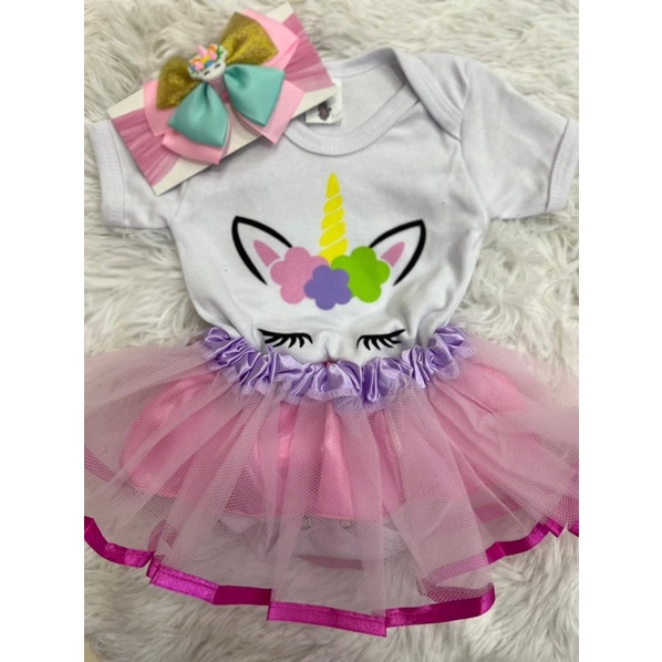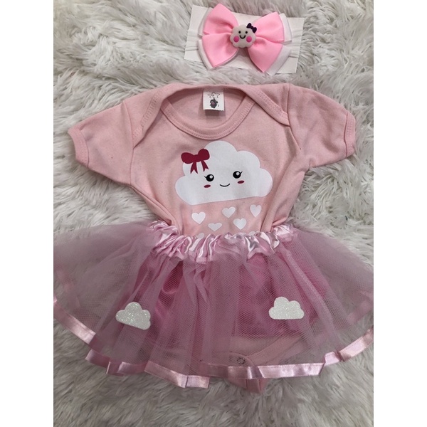 Kit Body + Saia + Laço Bebê Fantasia Mesversario Menina - Escolha o Modelo(K-3)
