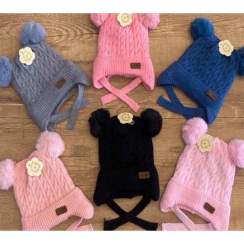 Gorro/Touca Infantil com dois pompom Amarrar liso Forrada Por Dentro para o inverno menino e menina moda novo 2026