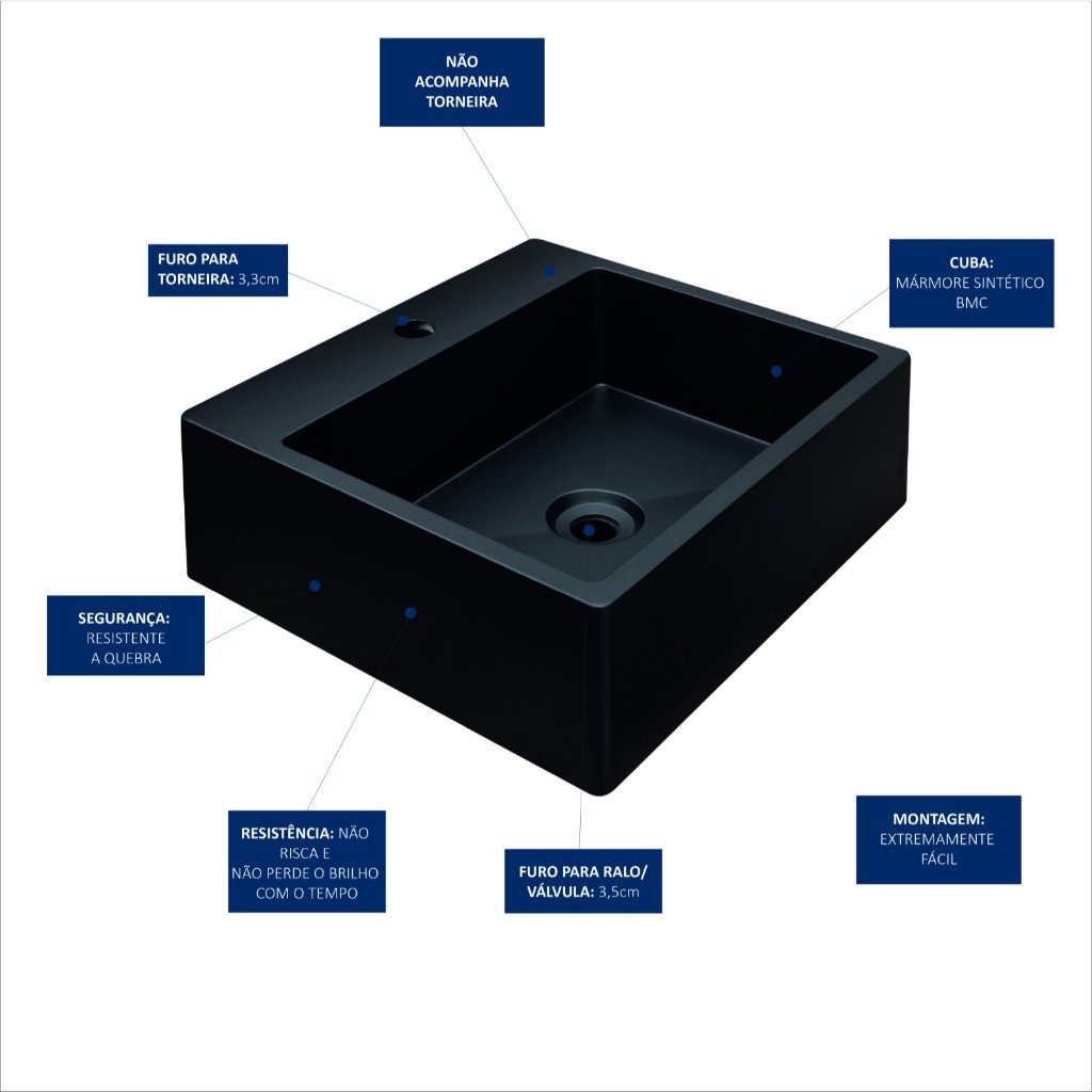 Cuba Pia Para Banheiro De Apoio Lavabo 40cmx37cm - Genova