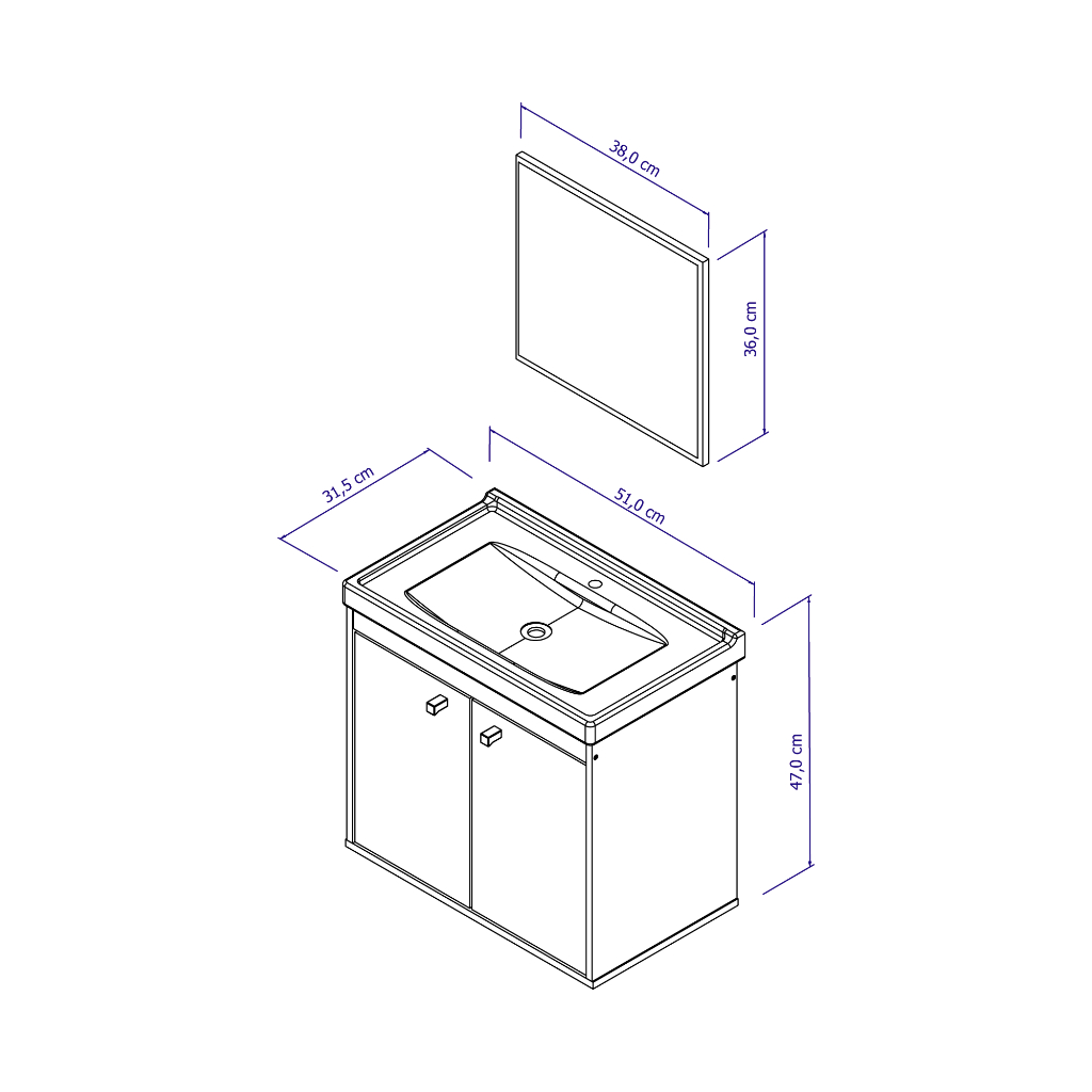 Kit Gabinete para Banheiro 50cm MDF com Cuba + Espelheira