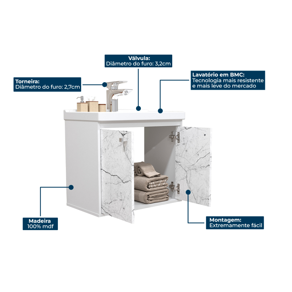 Gabinete para Banheiro 50cm MDF com Cuba