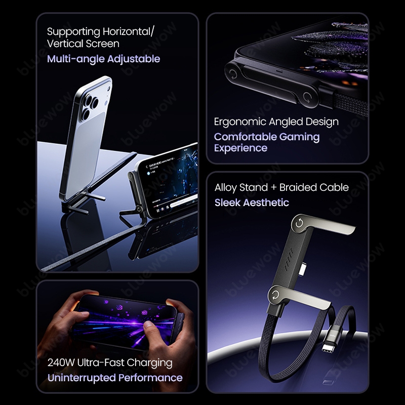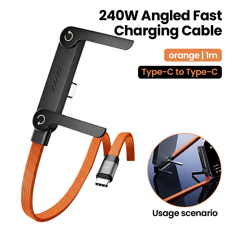 Cabo De Dados Com Suporte Angular BlueWow 240W Tipo C 1.5 M | 90 ° Para Jogos De Cotovelo Carregamento Rápido E Dobrável