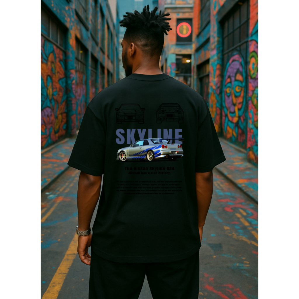 Camiseta Básica Masculina Skyline R34 Camisa 100% Algodão Costura Reforçada