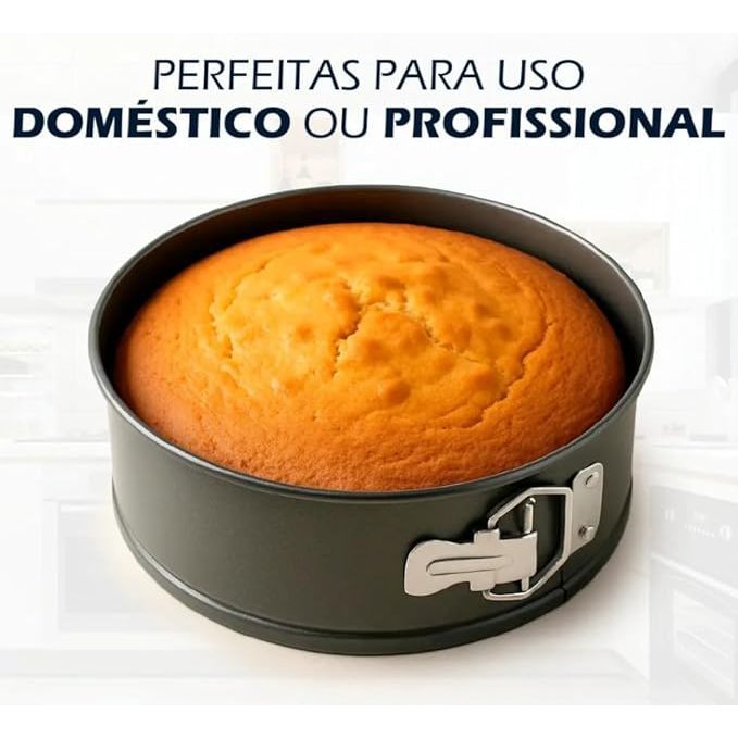 Kit 3 Formas Bolo Torta Assadeira C/ Fundo Removível Antiaderente 24cm 26cm e 28cm Multiuso Gourmet