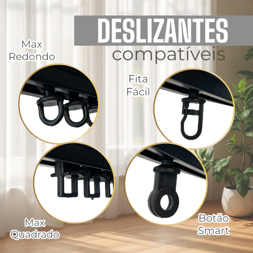 Kit Trilho Suiço Max Simples 2,14m Cortina Wave Instalação Parede Deslizante