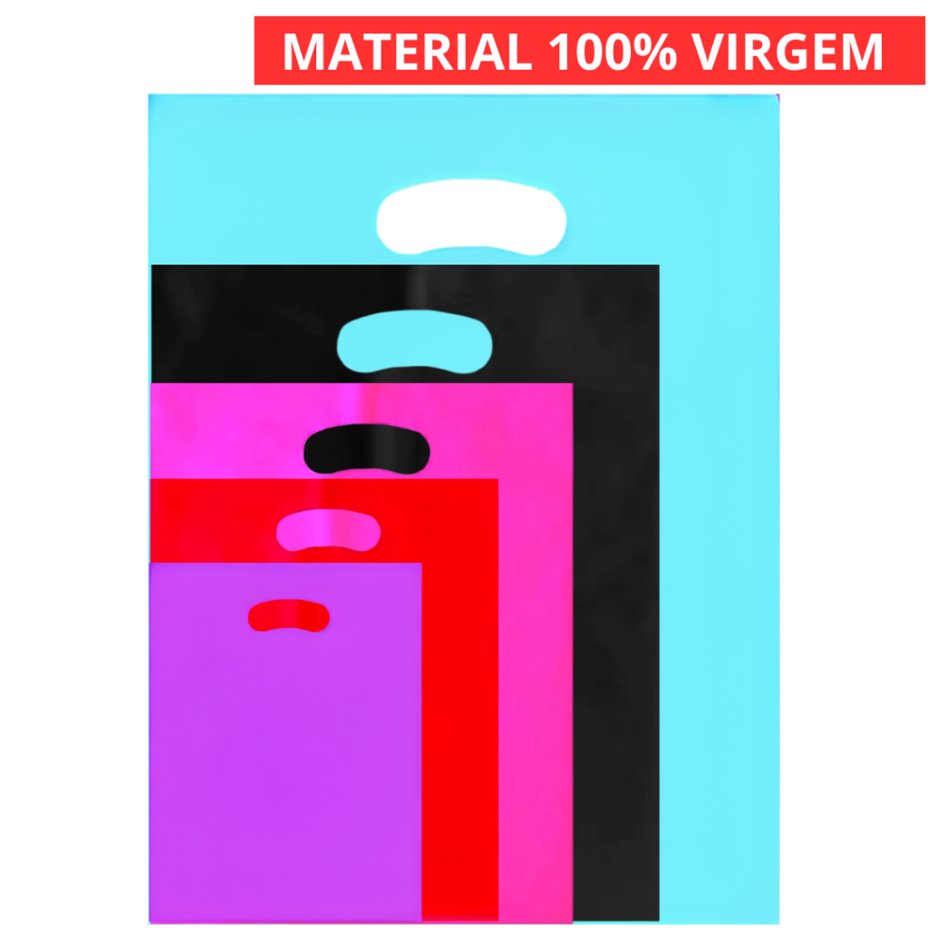 50 Unidades sacolas plasticas 30x40 - alça vazada - boca de palhaço