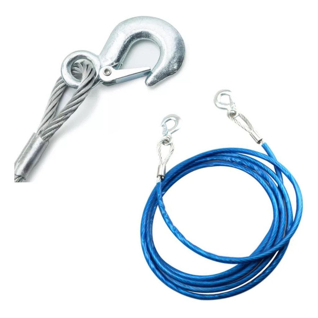 Cabo De Aço Reboque 8mm 4 Metros 2T Moto/carro/caminhonete C/ Gancho