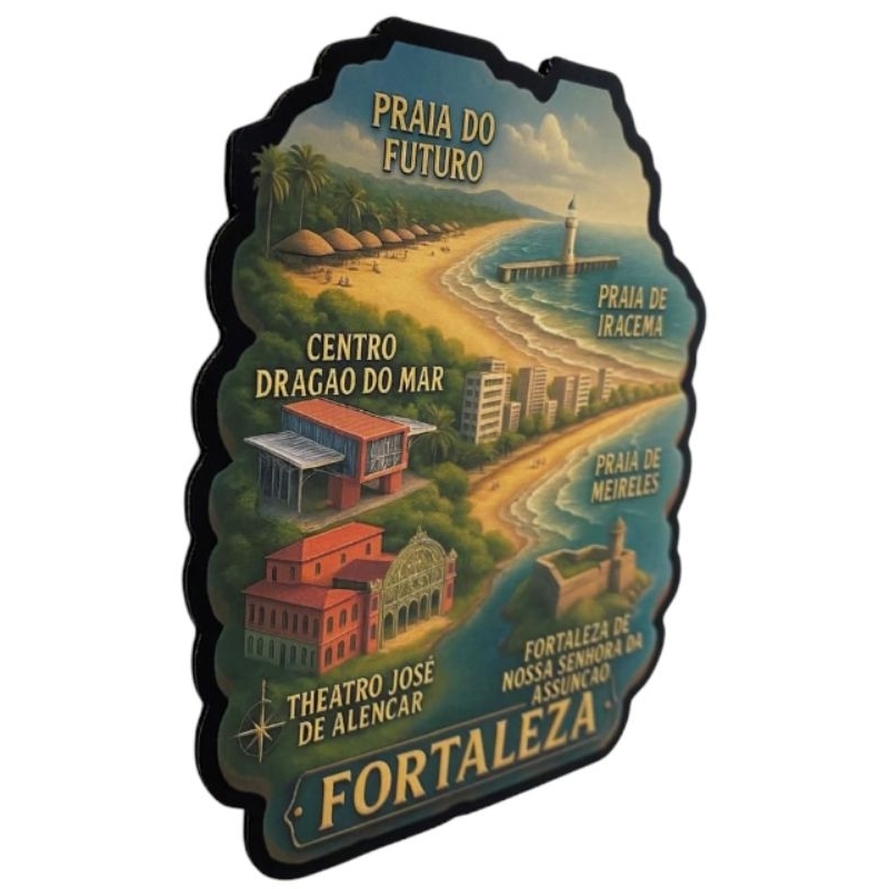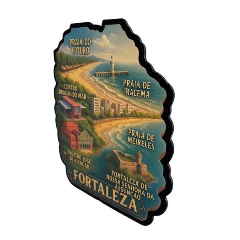 Imã de Geladeira Fortaleza – Pontos Turísticos Ilustrados, Lembrança de Viagem