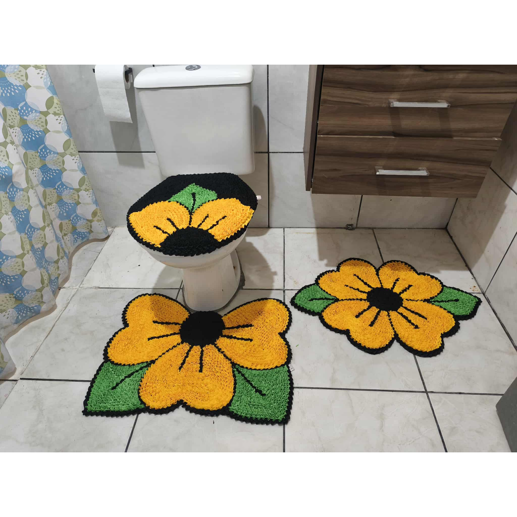 Tapete de Banheiro Flor coração 3 peças