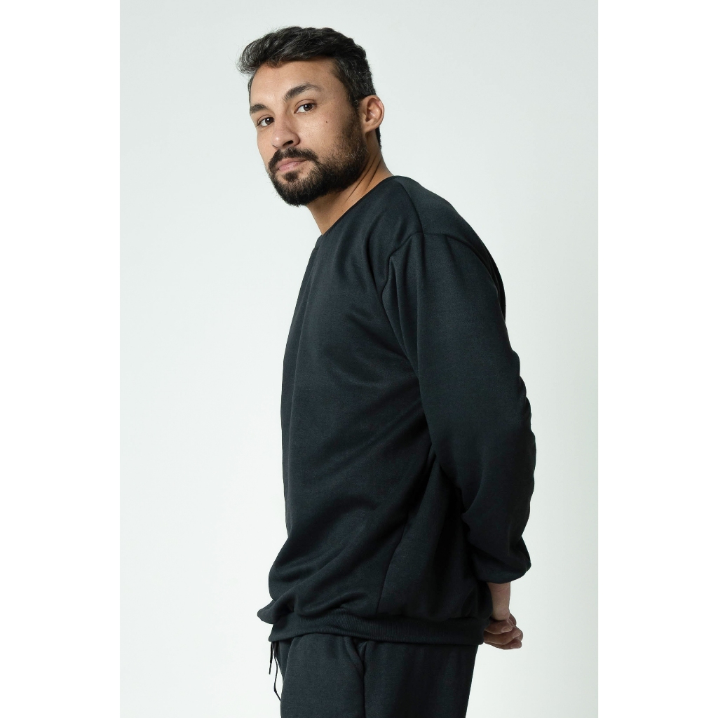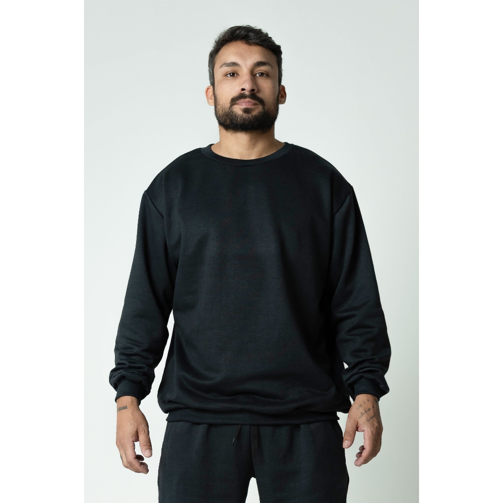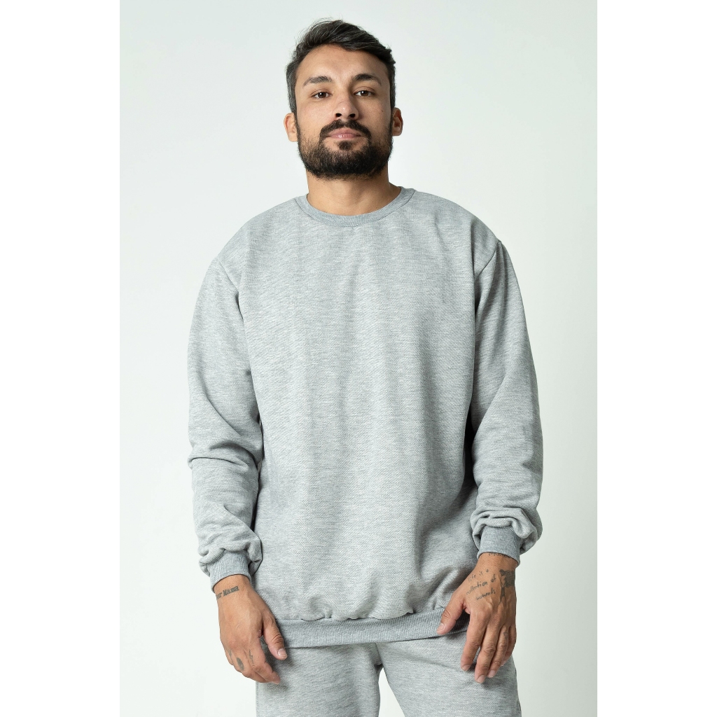 Moletom Gola Redonda Unissex Blusa De Frio Basico Careca Casaco Feminino Masculino Flanelado Liso Sem Estampa Algodão