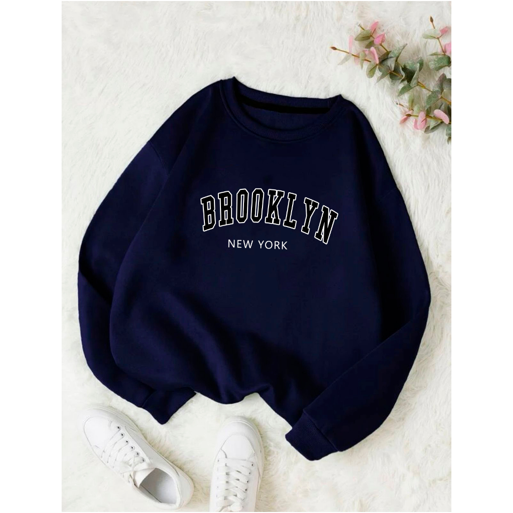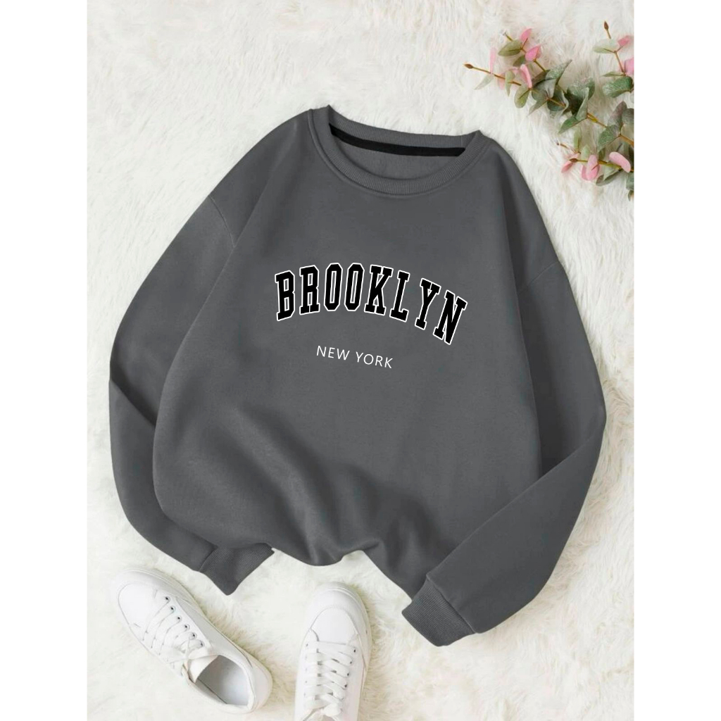 Moletom Gola Redonda Blusa Frio Básico Careca Casaco Feminino Masculino Flanelado Algodão Brooklyn